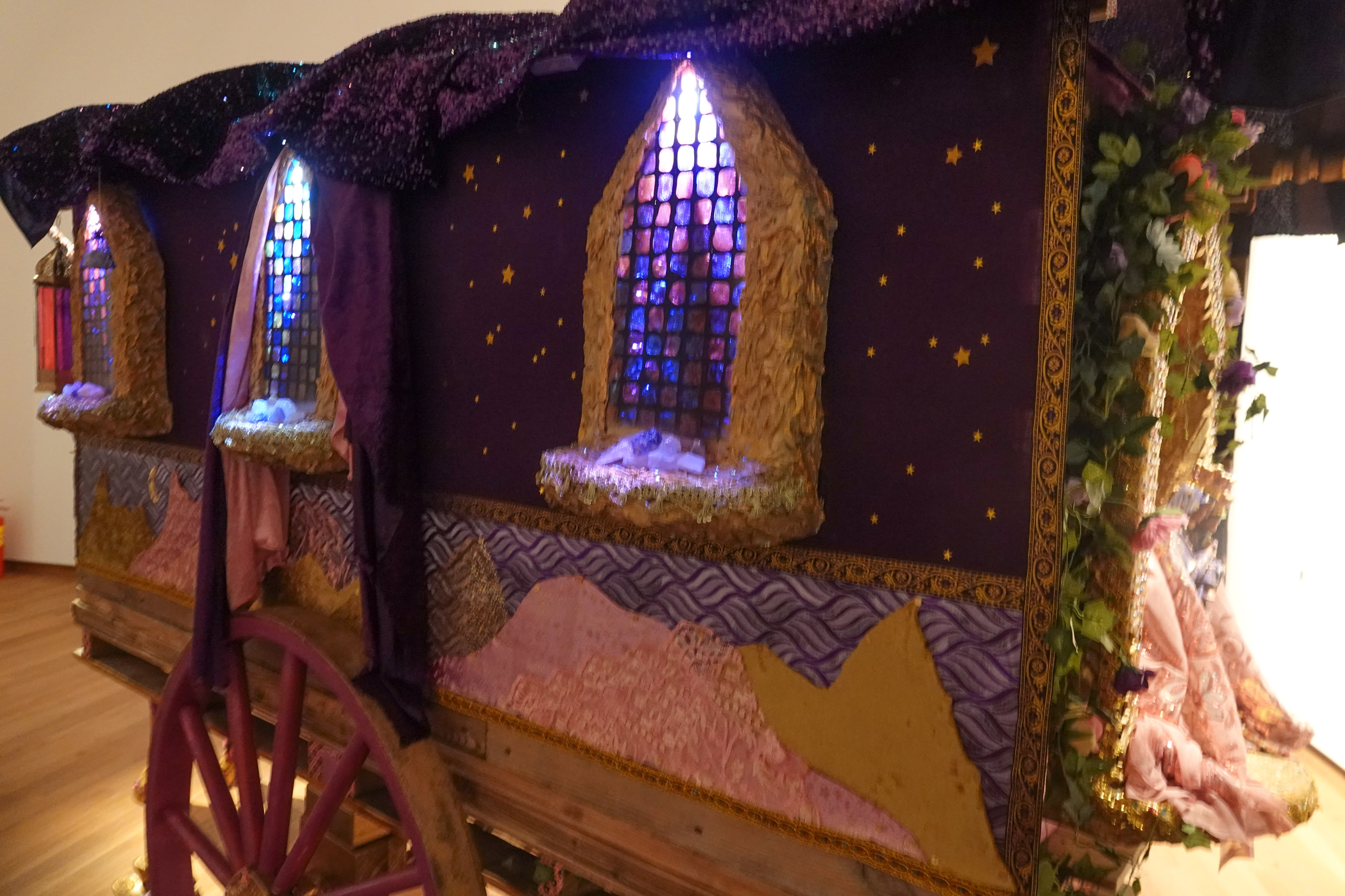 Bamberger werkte het thema uit o.a. in de vorm van een woonwagen met paard, maar ook helemaal met textiel.