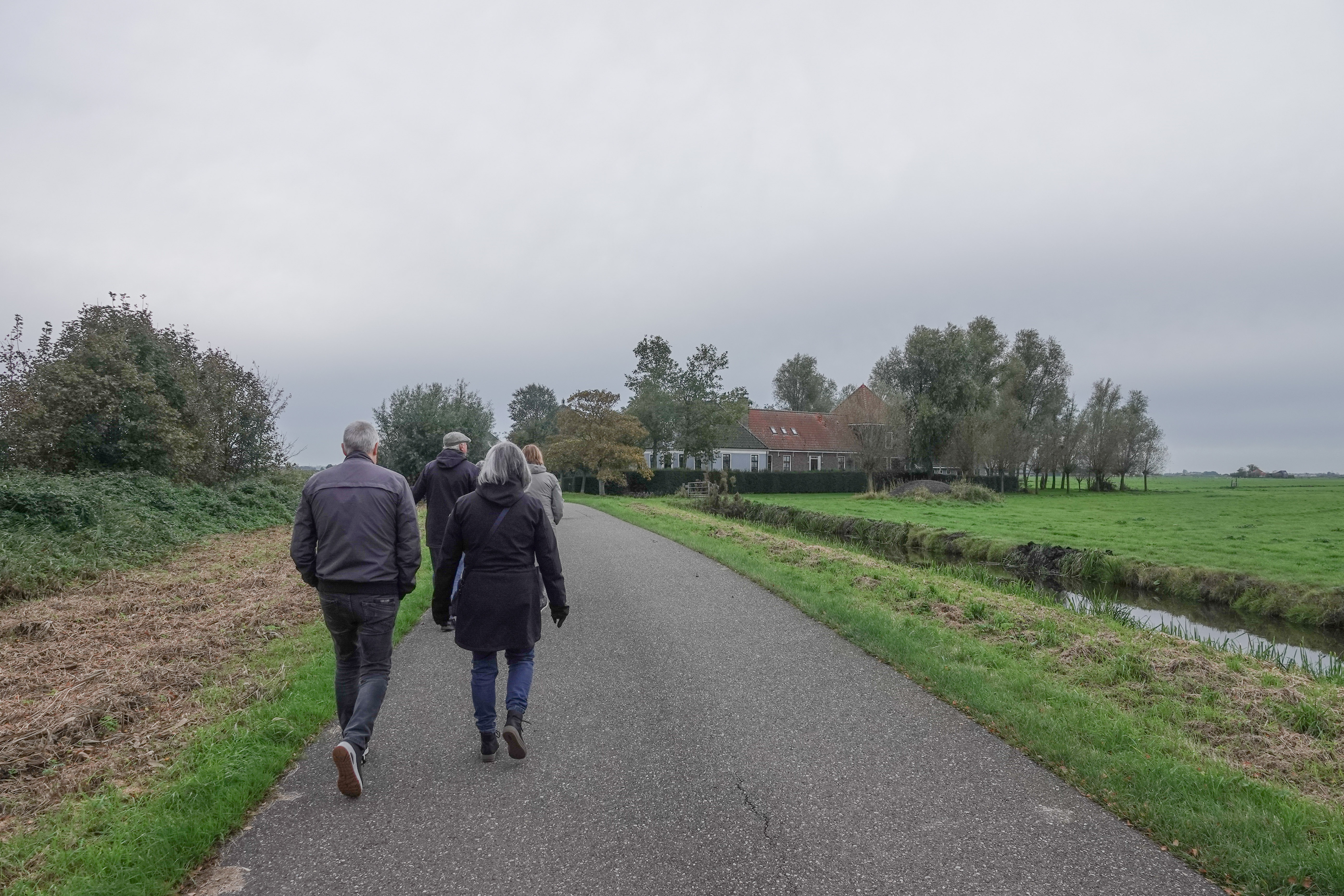 We daalden de dijk af en liepen richting Zuiderwoude over een boerenweggetje.