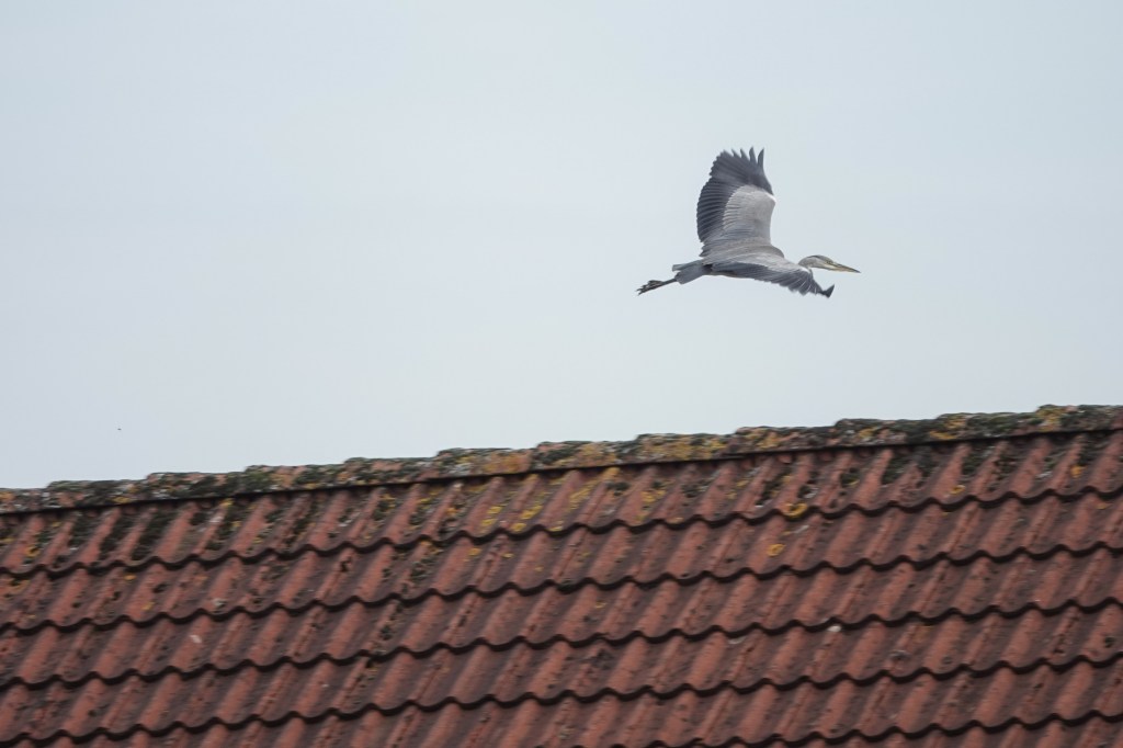 De vogels in vlucht en de reiger op het dak. Je maakte weer schitterende foto’s!