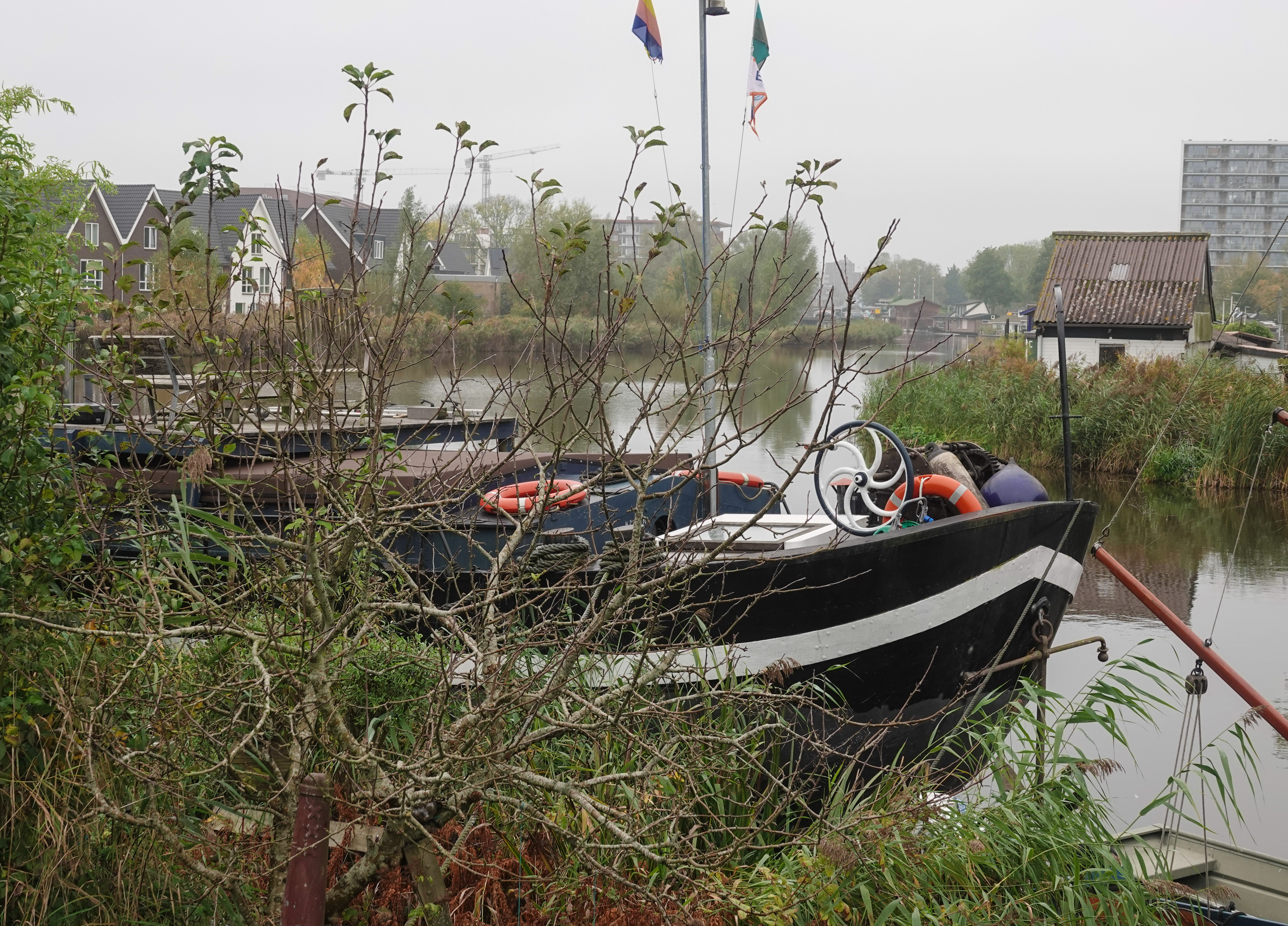 Langzaam buigen we af en komen in verstedelijkt gebied. Door het Leeghwaterpark, langs het zwembad en de woonboten van de Overwheerse Polderdijk draaien we het Oudelandsdijkje weer op.
