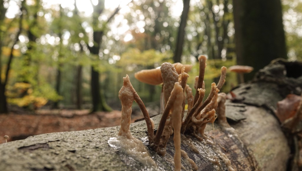 Je zou denken, dat we om in de herfstsfeer te komen het Speulderbos introkken. Toch was dat een bijkomend element, dat weliswaar sfeerverhogend werkte maar het was eigenlijk toeval. Hoewel onze workshop begeleider de activiteit misschien wel bewust in de herfst gepland had, ging het ons om het opfrissen en leren toepassen van allerlei fototechnieken met als doel eens anders te fotograferen dan het geijkte. De workshop werd gegeven namens Natuurfotografie.