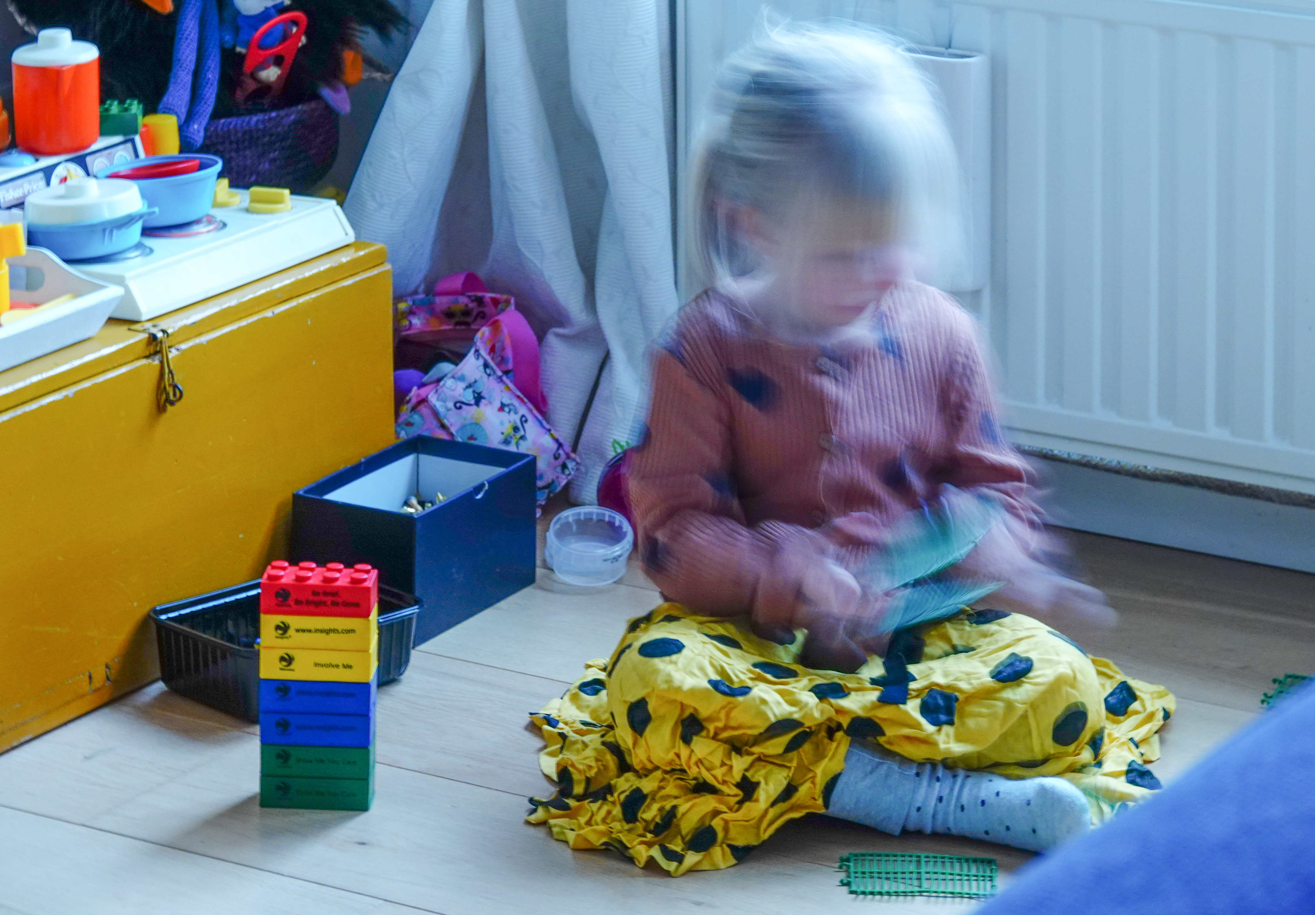 Ik heb twee kinderen en twee kleinkinderen. Mijn zoon en dochter waren uiteraard verschillend, maar bij mijn kleinkinderen (beiden van dochterlief) is het verschil wel heel groot. Ik paste twee dagen na elkaar op hen. Ze waren er niet samen, maar de ene dag was mijn kleinzoon van bijna anderhalf te gast en de dag erna kwam mijn kleindochter van bijna vier en een half. Mijn kleindochter was haar hele leventje regelmatig bij ons. Die ken ik dus door en door. Het is een rustig meisje, die zich fysiek niet heel snel ontwikkelde. Ze had wat last van hypermobiliteit, waardoor het langer duurde voordat ze kon lopen. Traplopen ging lang op haar billen of knieën. Ze zat vaak rustig te spelen, kon genieten van voorlezen, liedjes zingen en bij je op schoot zitten. Ze praatte al snel honderd uit. Het vergelijk met mijn kleinzoon kan niet groter zijn. Hij zit geen drie tellen op zijn kont, is stevig gebouwd, vliegt en rent, klimt overal op, peutert aan stopcontacten, sluitingen van kasten, lichtknoppen zijn niet veilig enz. Spelletjes kunnen niet druk genoeg zijn. Hij is de hele dag onvermoeibaar op ontdekkingstocht. Als oppasser kun je hem geen tel uit het oog verliezen. Als het stil is, moet je gauw kijken, want voor je het weet is de haan geplukt.