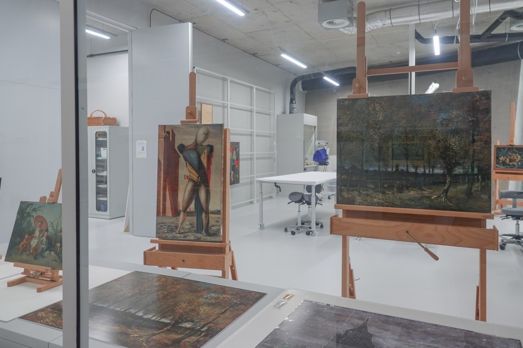 Momenteel is museum Boijmans van Beuningen dicht vanwege een grote renovatie. Alle kunst uit dat museum is in de tussentijd in het Depot onder gebracht. Voor topstukken uit de collectie hebben ze een speciale manier van bewaren bedacht en wel eentje waardoor wij de mogelijkheid krijgen om de kunst te bekijken. De schilderijen hangen hier namelijk niet aan de muur maar aan glasplaten op betonnen sokkels. Deze presentatiewijze is in 1968 bedacht door de Italiaans-Braziliaanse architect Lina Bo Bardi. Deze ‘glazen ezels’ geven door het ruimtelijke karakter ook informatie over de achterkant en daarmee over materiaalgebuik, techniek en herkomst van de schilderijen.