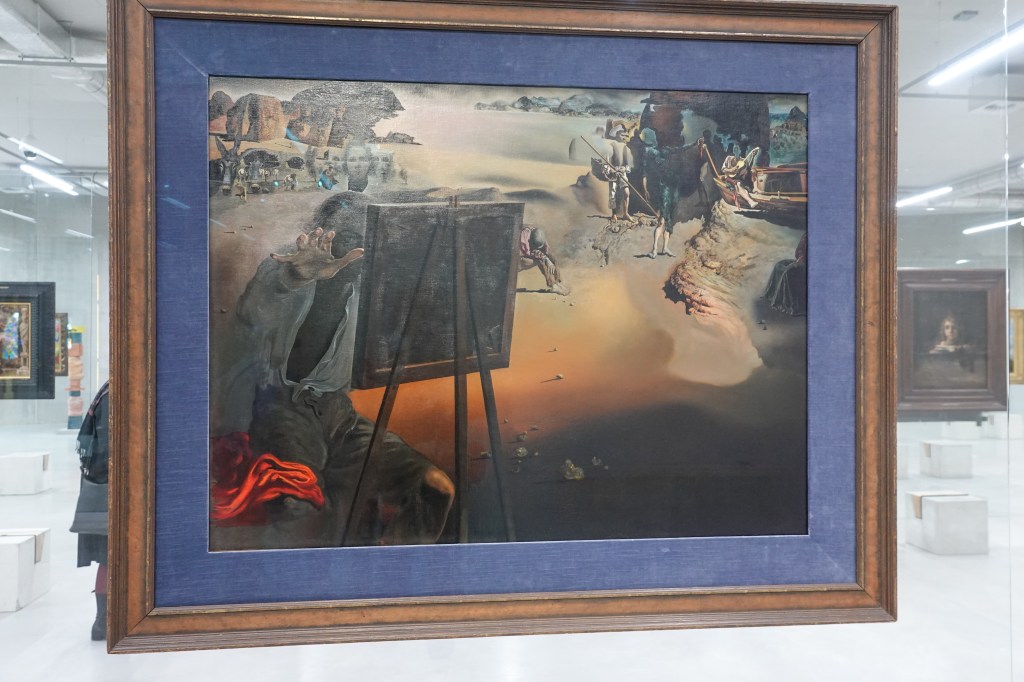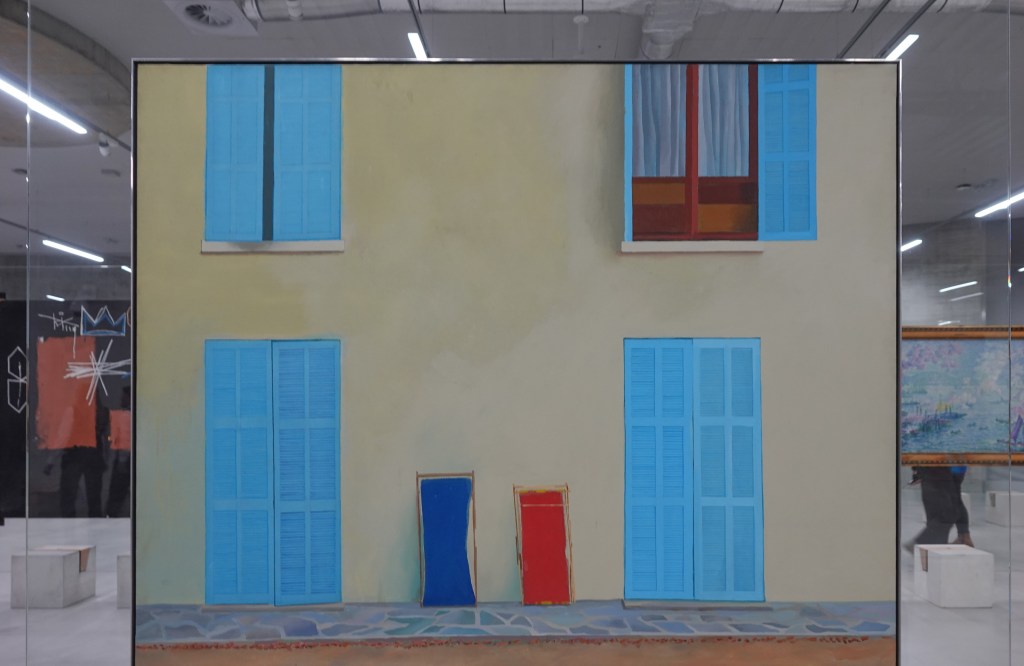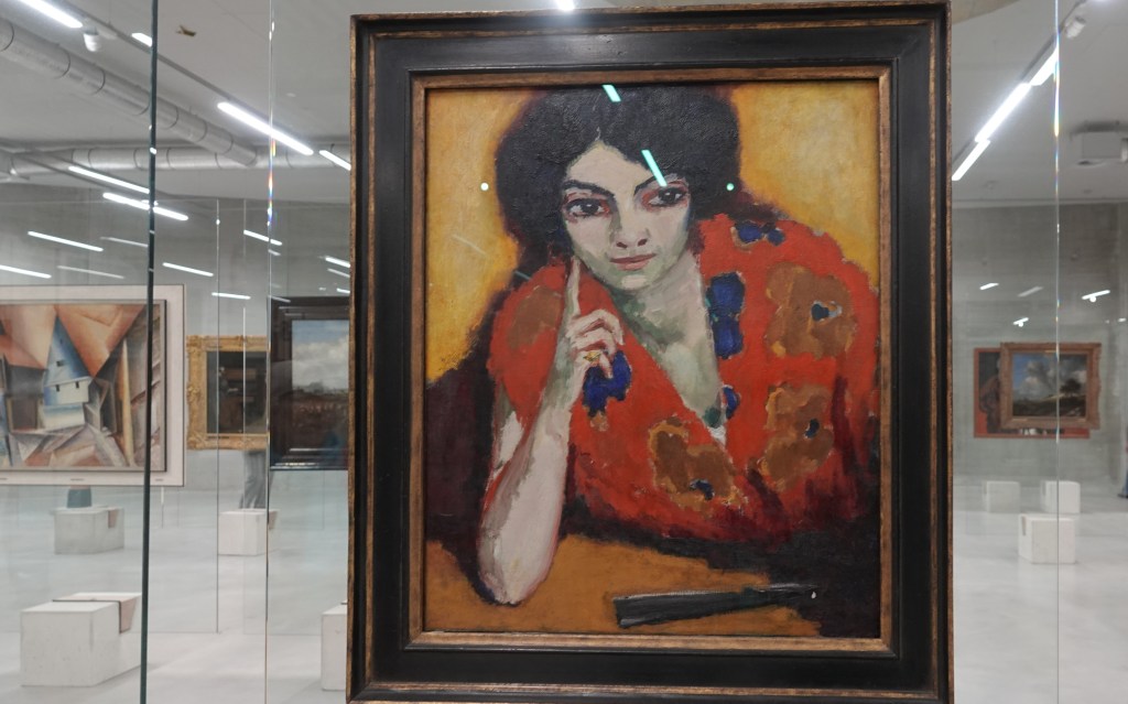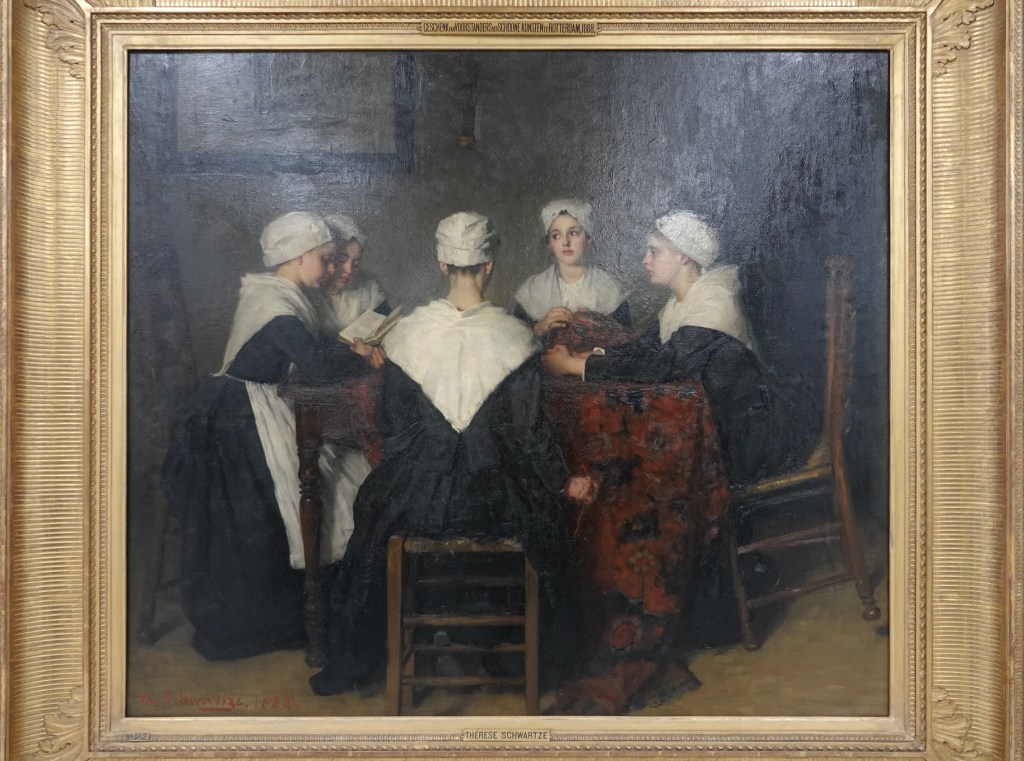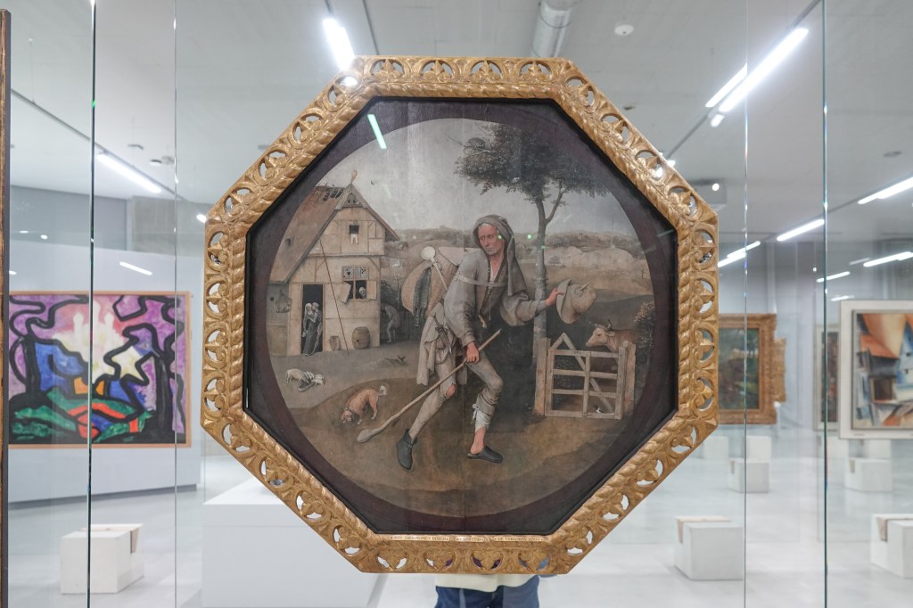 Dat het in het Depot geen echt museum is merk je wel aan het feit dat alles hier eigenlijk lukraak door elkaar hangt. Stijlen, modern of traditioneel, middeleeuwse kunst naast twintigste eeuws, alles door elkaar. Dat is even wennen, maar er hangen de mooiste dingen. Veel herkenning, van werk, dat ik al eens ergens anders had gezien. Even een slideshow van beroemde namen als Kees van Dongen, Jeroen van den Bosch, Miro, Pyke Koch, Jan Weenix,Thérèse Schwartze, Saenredam, David Hockney, Vincent van Gogh, Dali, Matisse, Breitner.
