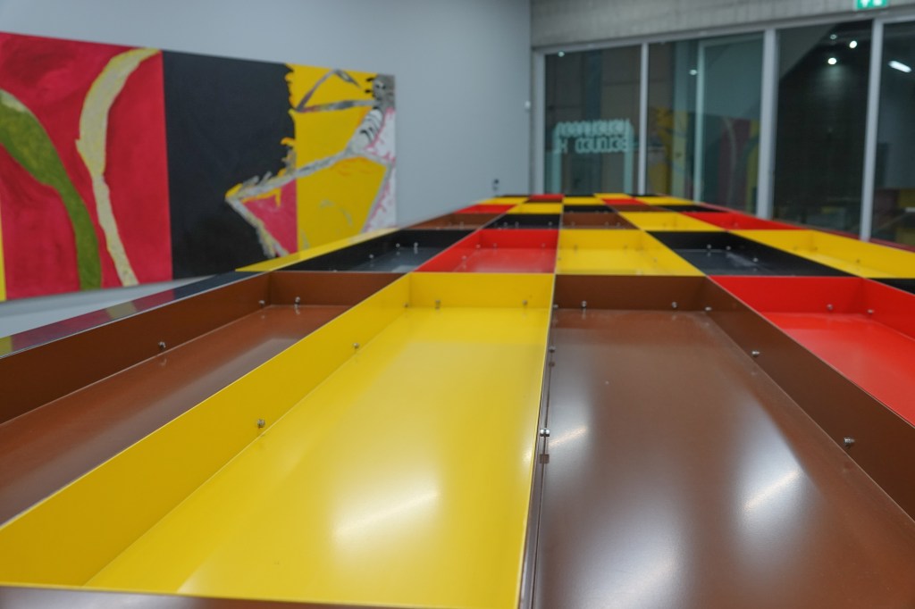 met werk van Andy Warhol , fabriek van Lieshout en Rothko.