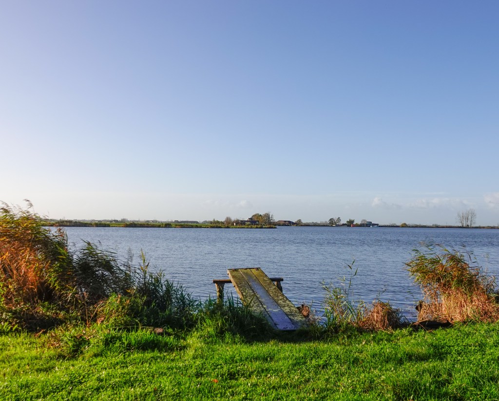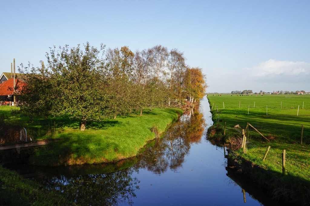 Eigenlijk loop je de hele route langs of boven over een dijk. Je volgt de stroom van de Purmer Ee die op een gegeven moment verbreedt tot een meertje achter de dijk.