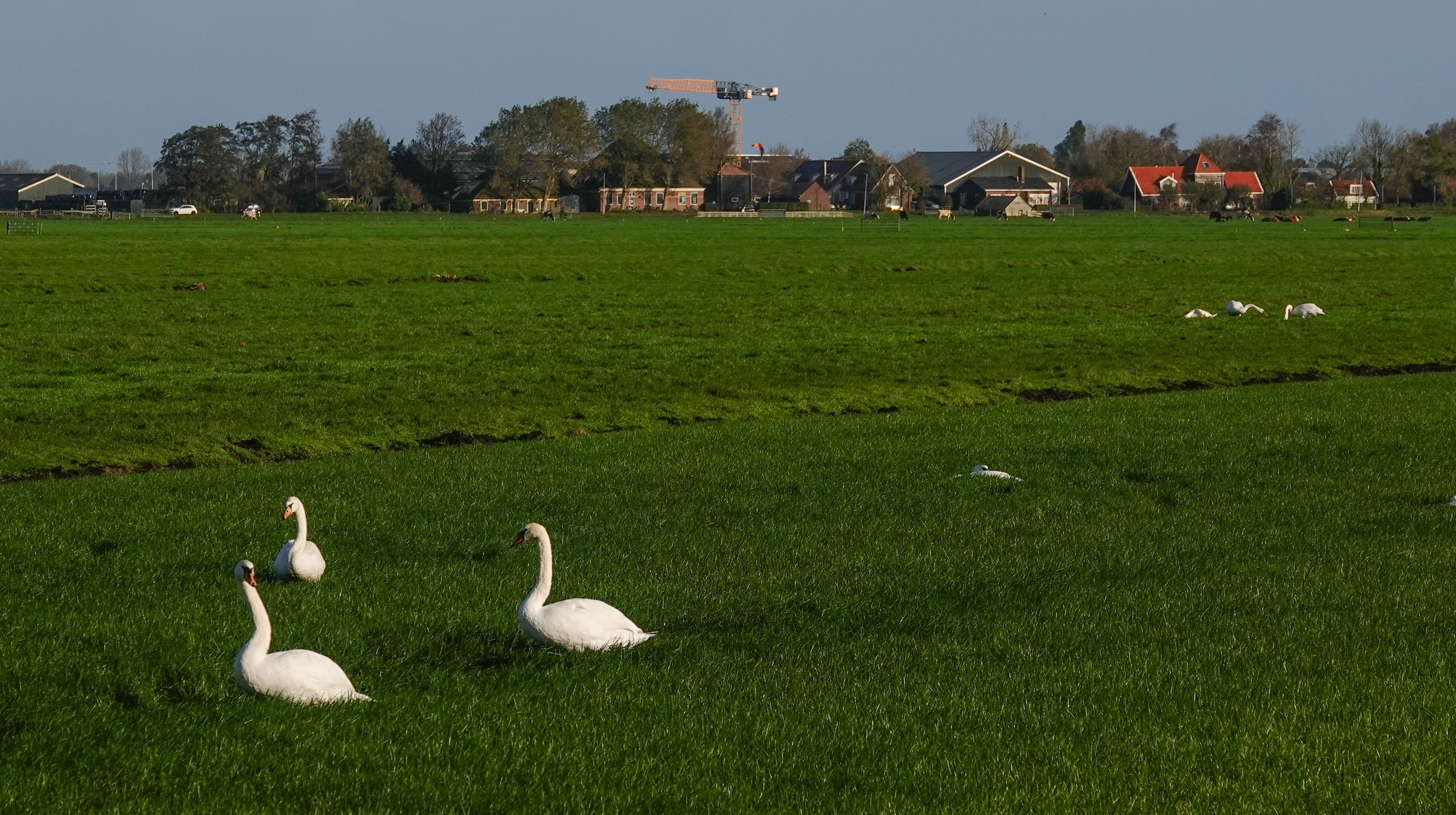 Dieren waren er ook. Jong vee en zwanen in de wei