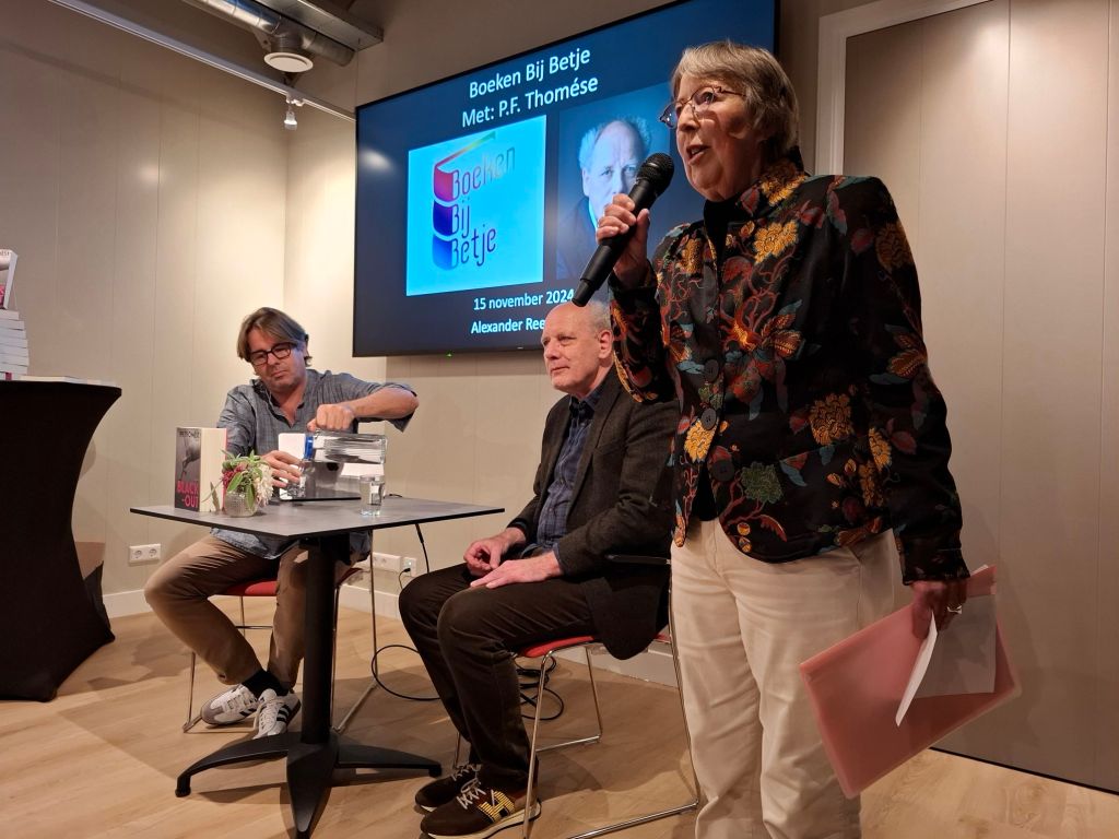 Toen kon Alexander Reeuwijk van start met zijn interview met Frans Thomése. Er ontspon zich een boeiend gesprek over zijn schrijverschap en ook over zijn laatste boek ‘Black out’. Reeuwijk is er een kei in om het gesprek breder te trekken dan het boek alleen.