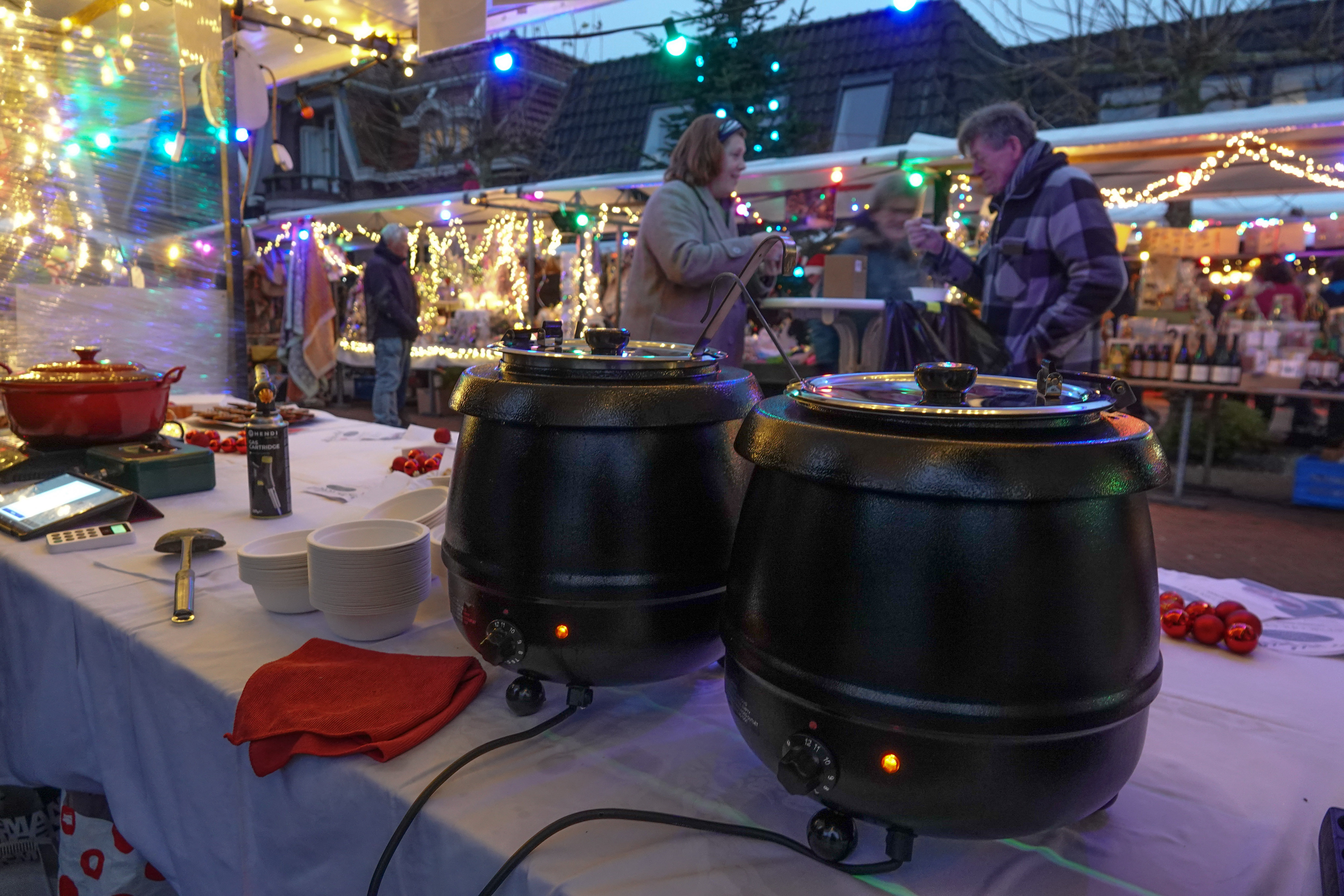 Wij verkopen daar jaarlijks uiensoep, erwtensoep met Franse worst en of broodje zuurkool met worst. Alles is zelfgemaakt door koorleden.