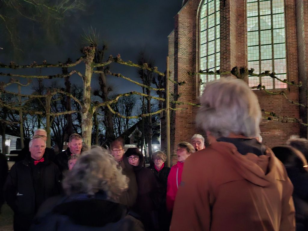 Vervolgens waren wij de laatste in rij van koren. Als afsluiting van de avond ging het licht uit en in het kaarslicht zongen we met de hele kerk samen als afsluiting een klassiek kerstlied ‘Ere zij God’.