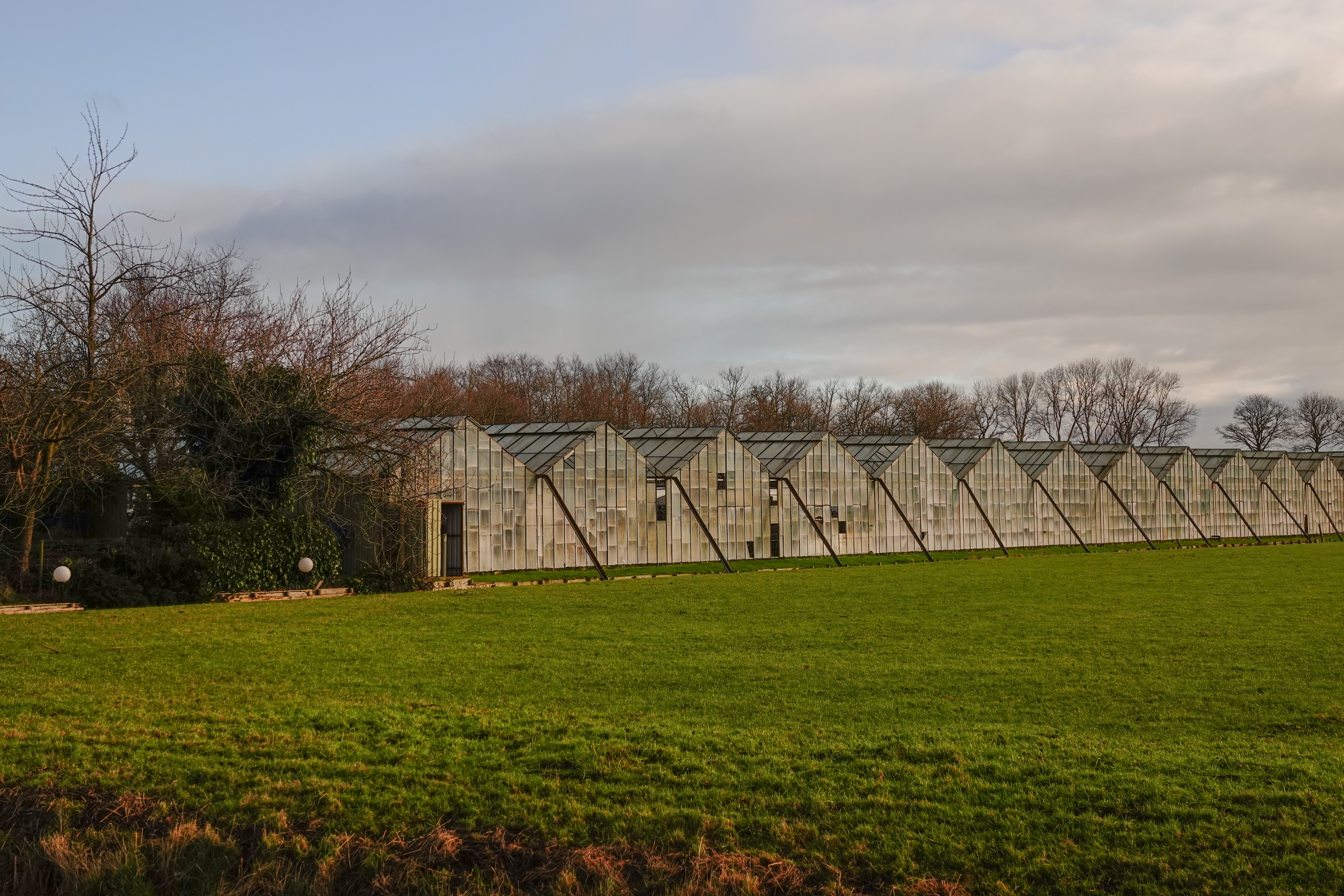 Dankzij de vruchtbare grond In deze polder is er veel fruitteelt en tuinbouw te vinden. Van het laatste getuigen deze kassen.