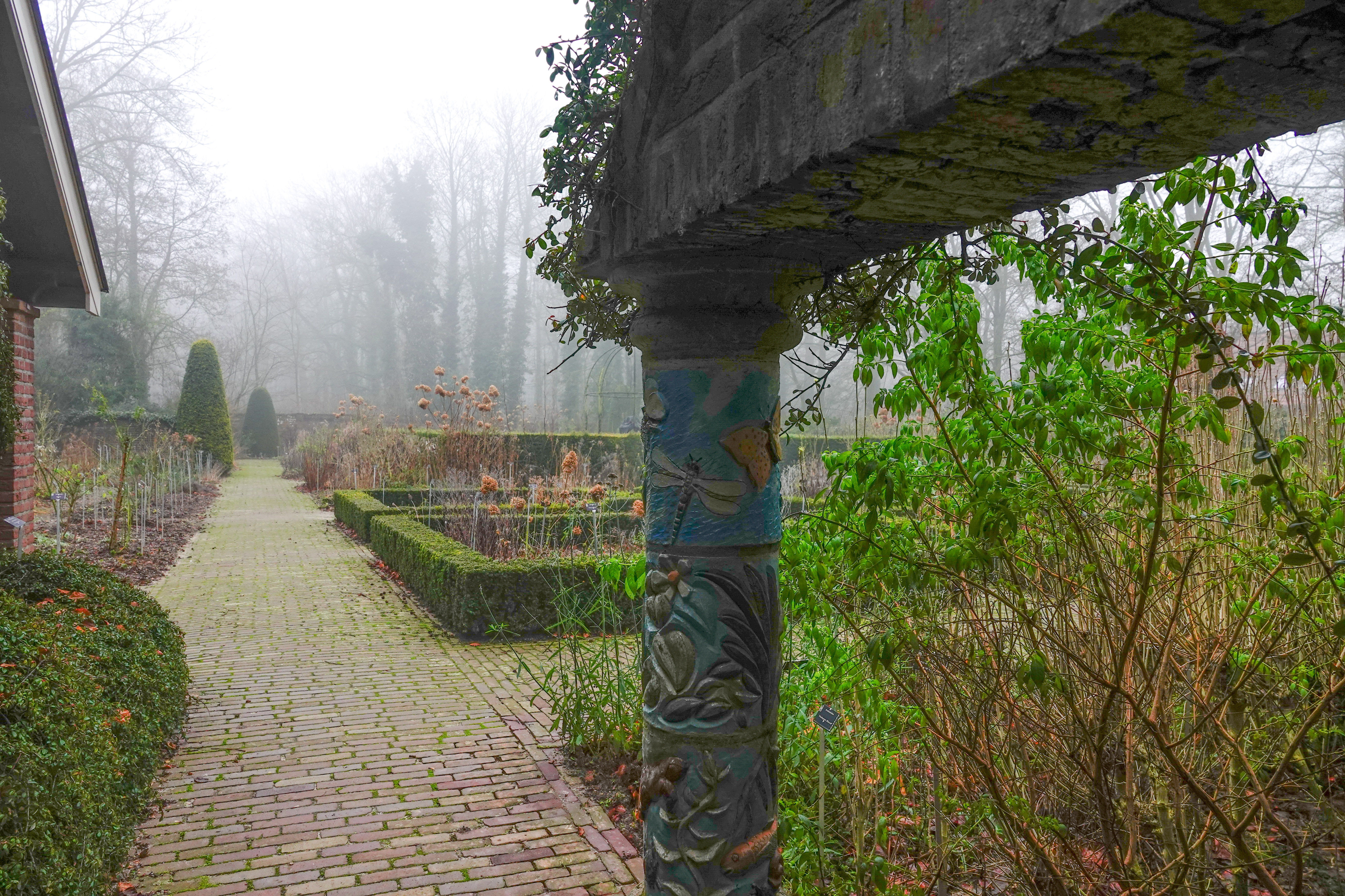 Die mist bleef bovendien de hele dag hangen. Je zou zeggen, een dag om somber van te worden, maar wij hebben met zijn zessen verschrikkelijk genoten. De wereld om ons heen was dan wel klein, maar dat leverde heel speciale vergezichten en doorkijkjes op. Je zou het niet verwachten, maar de ‘oh’s en ah’s’ waren onderweg niet van de lucht.