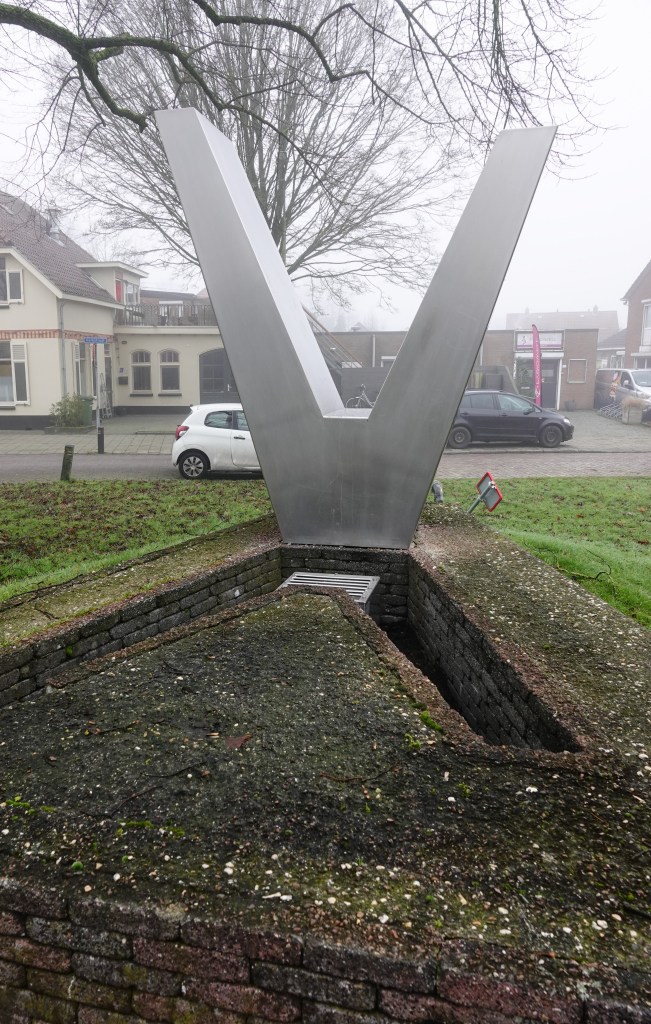 Dat herinnert aan de heftige strijd, die in Zetten gevoerd is. Uiteindelijk werden de Duitsers teruggedrongen tot achter de Linge. Zo’n rivier was vaker de inzet van een hevige strijd, wat je dus terug ziet in het hele gebied, dat wij doorkruisen. De tegels op het monument zijn een eerbetoon aan allen die meehielpen om de Betuwe te bevrijden.