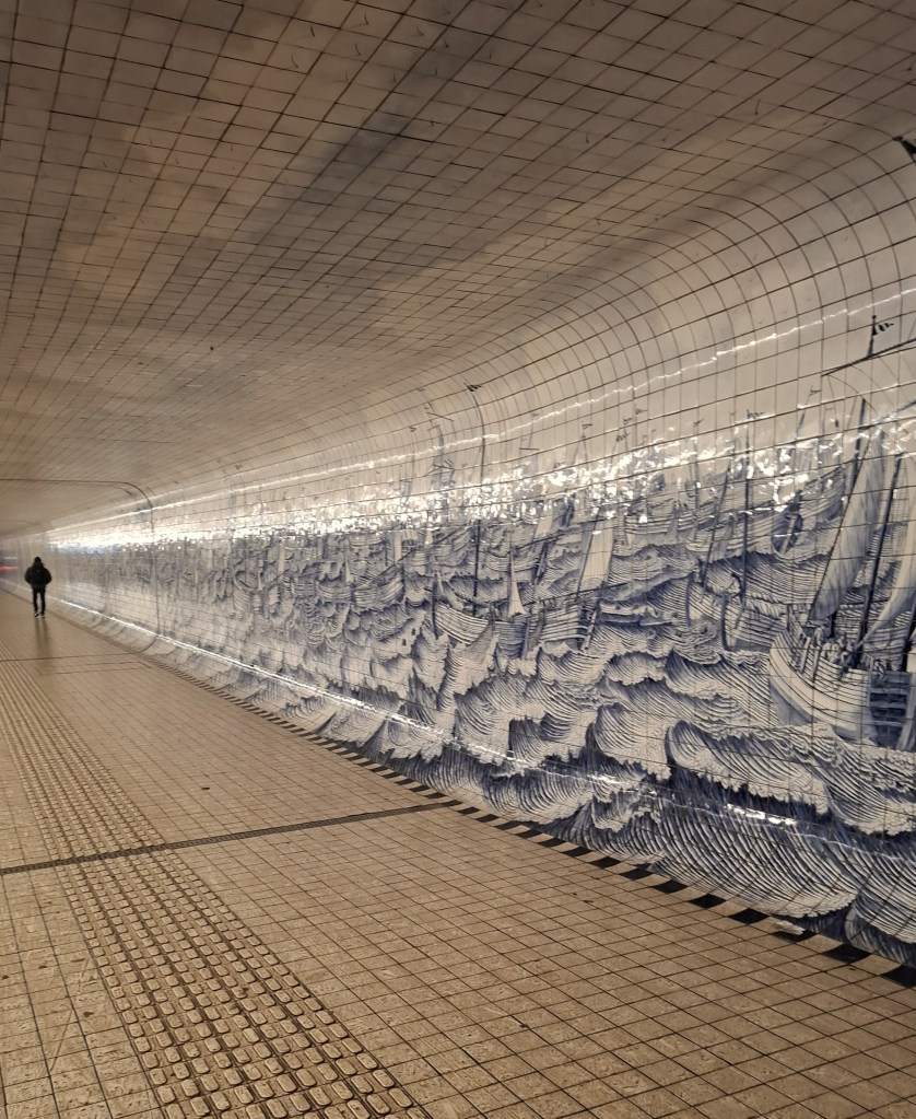 mooie serie Amsterdam in de avond, de schildering op de tunnelmuur vind ik heel bijzonder mooi met die antieke schepen! charlie