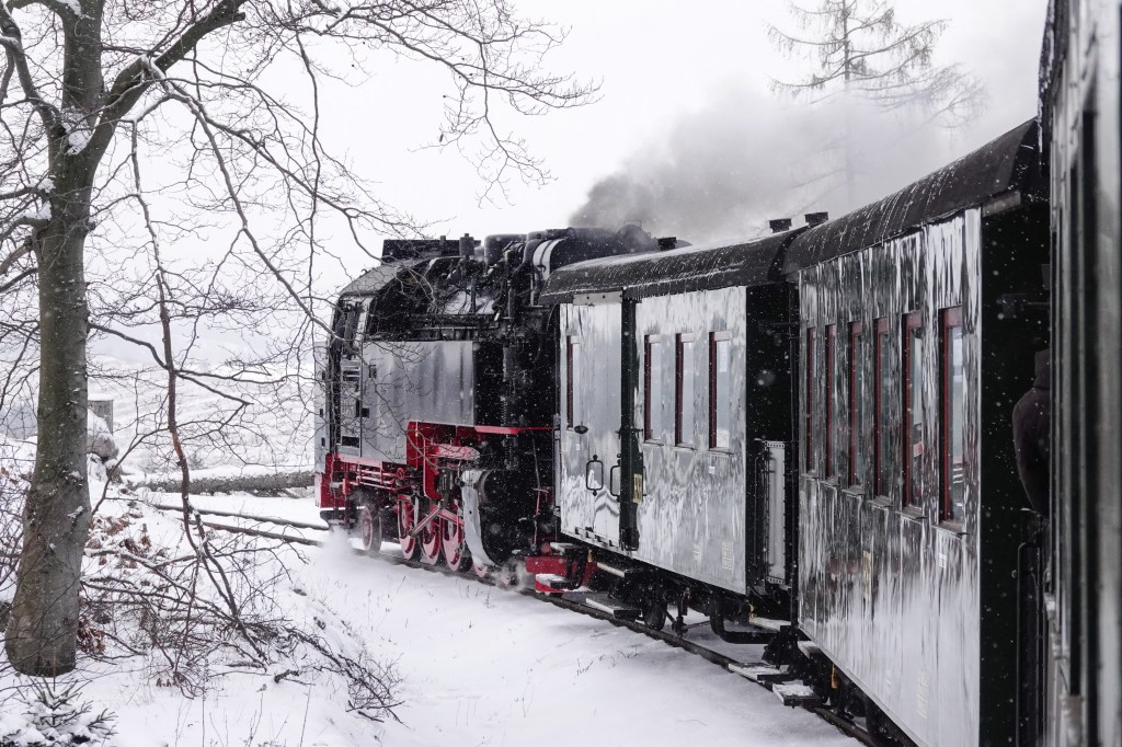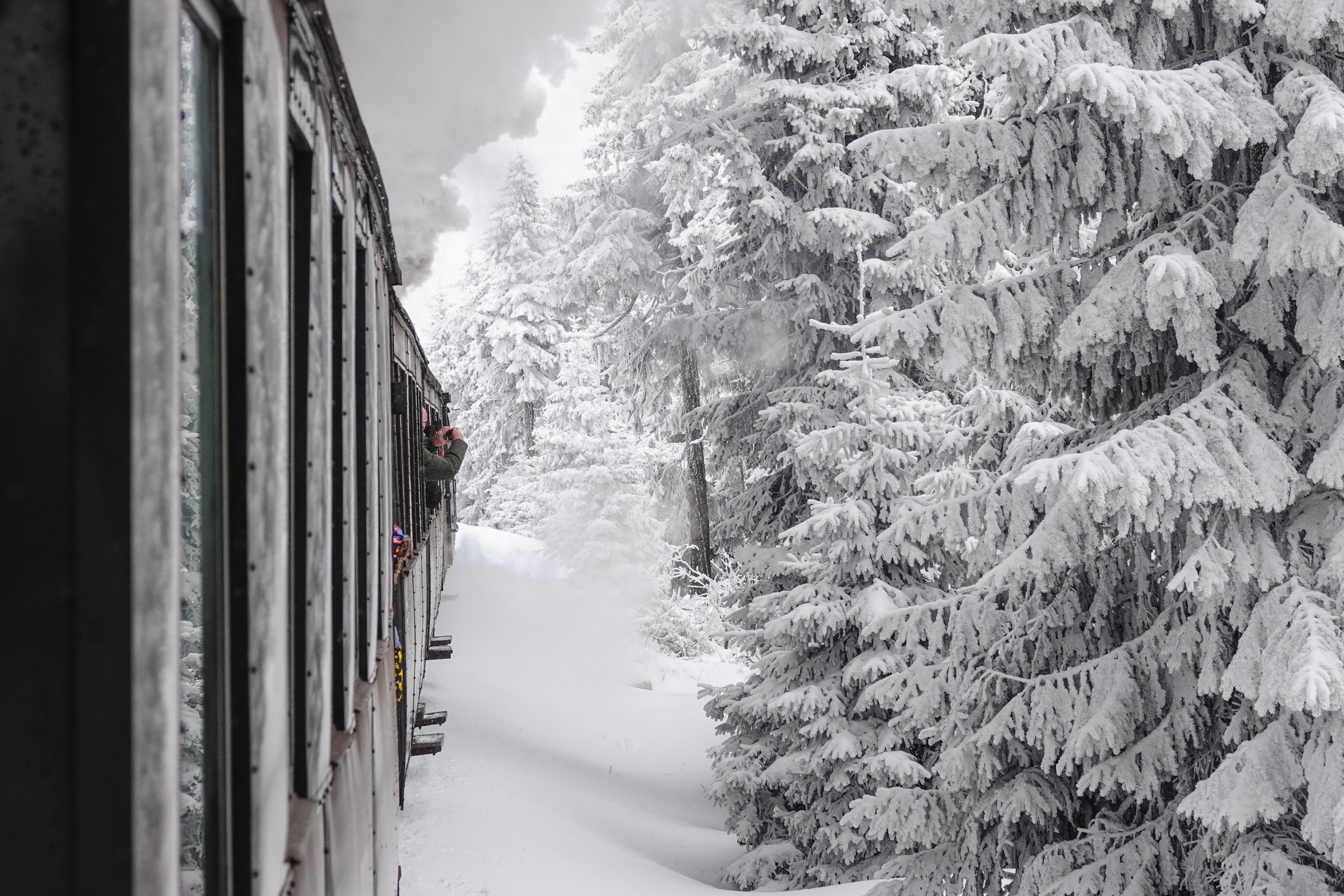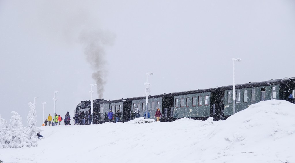 Op de derde dag bracht een lange treinreis met de stoomtrein ons naar de Brocken. Het is de hoogste berg van het Harzgebergte en hij is 1142 meter hoog. Van oudsher is de Harz bekend als mijnbouwgebied. Onderweg begon het te sneeuwen. Hoe hoger we kwamen hoe adembenemender de natuur werd.