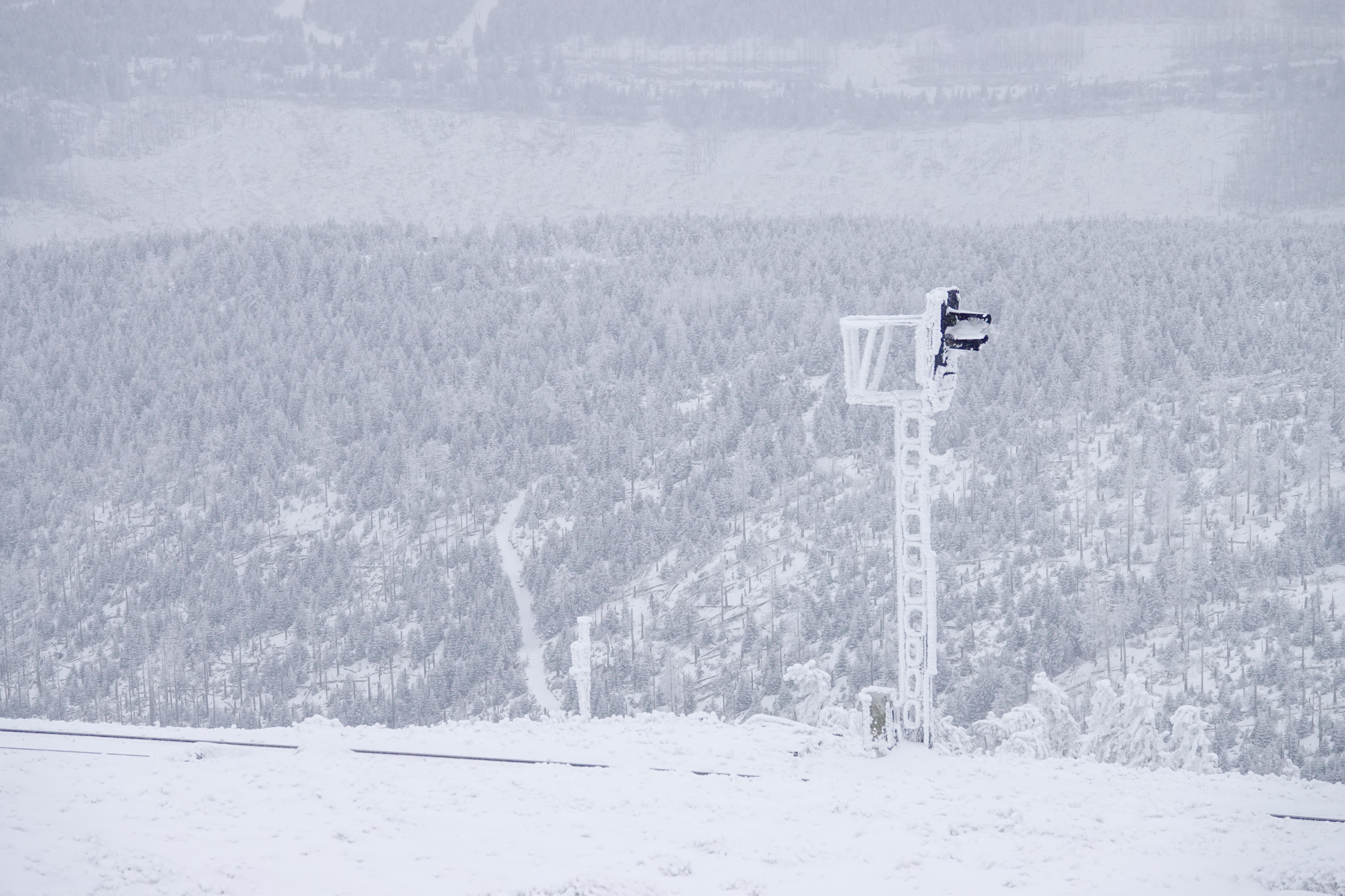 Ik ben nooit op wintersport geweest, maar nu kreeg ik wel een goed idee van wat wintersport is. Op het hoogste punt stapten we uit bij een zendmast omringd door andere industriële gebouwen.