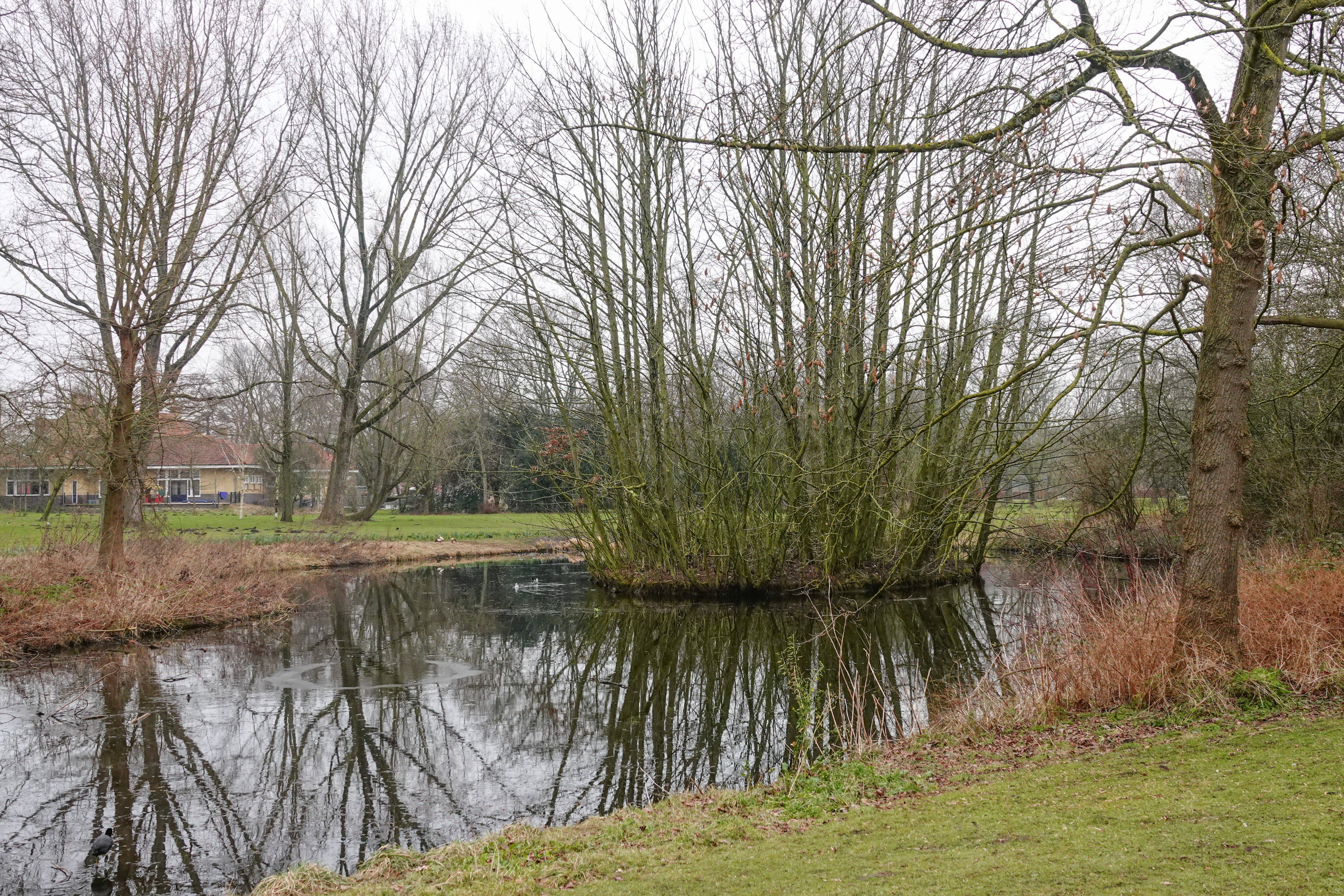 liepen we richting Noorderpark. Daar spotte ik een buizerd. Helaas draaide hij zijn kop net, maar toch bijzonder, zo’n grote roofvogel in een stadspark met uitspanning.