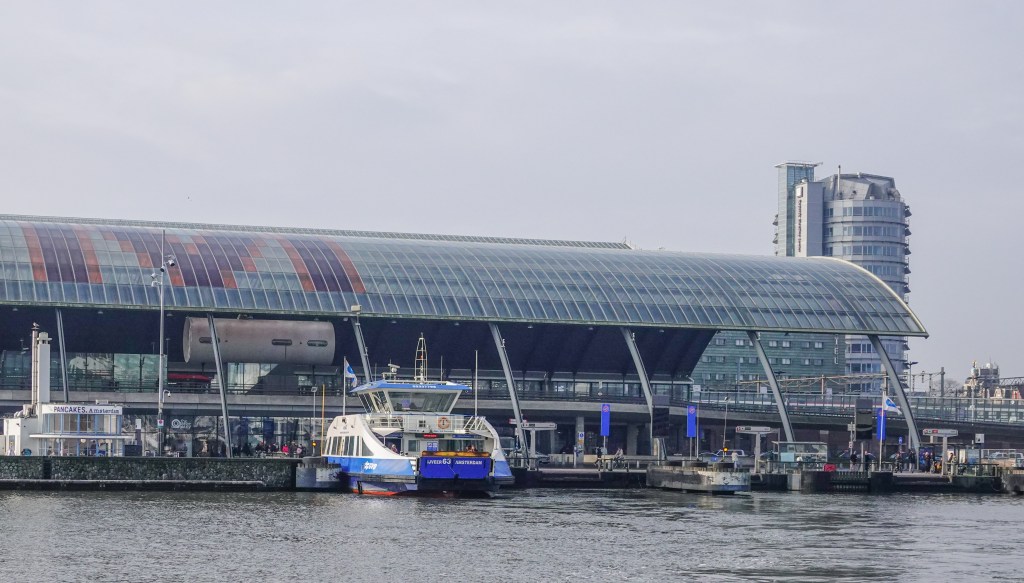 Weliswaar duurt de vaartocht langer dan de eerdere oversteek, maar we komen weer aan bij het Centraal Station, met 14 km in de benen.