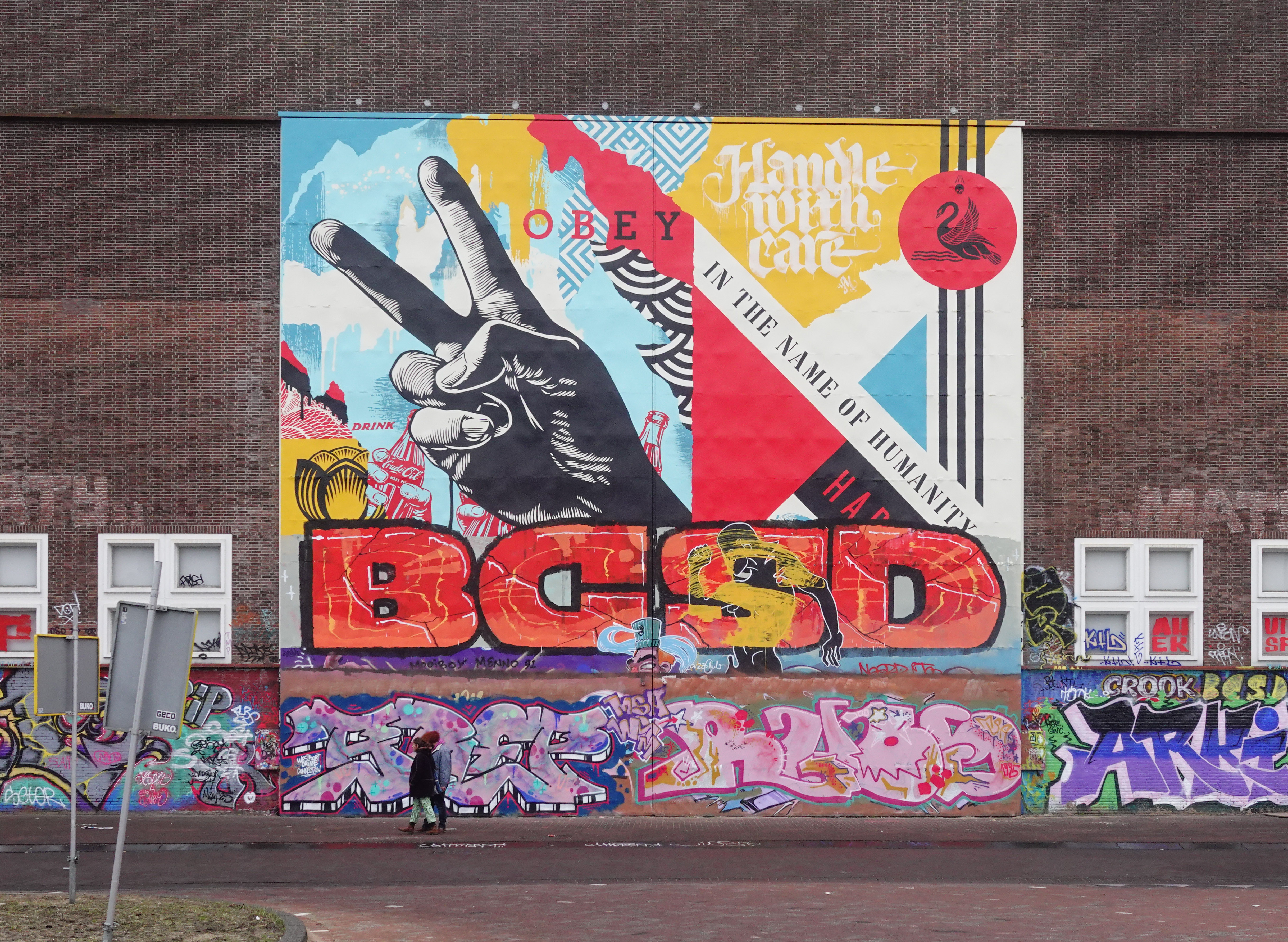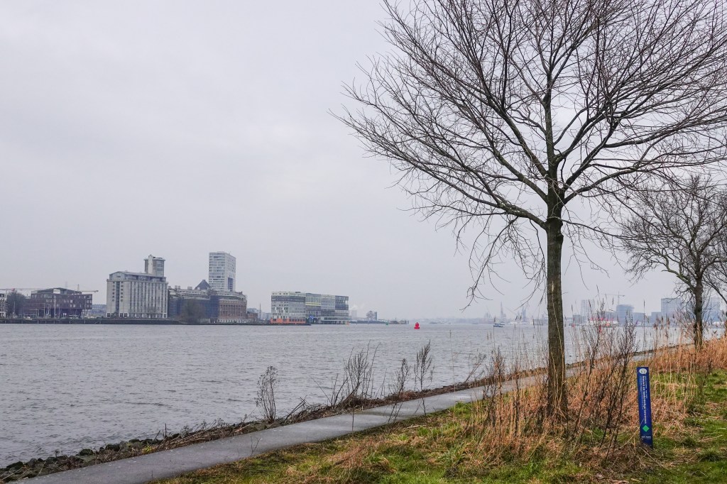 We naderden weer het IJ. Via het NDSM terrein met zijn vele uitingen van graffiti,