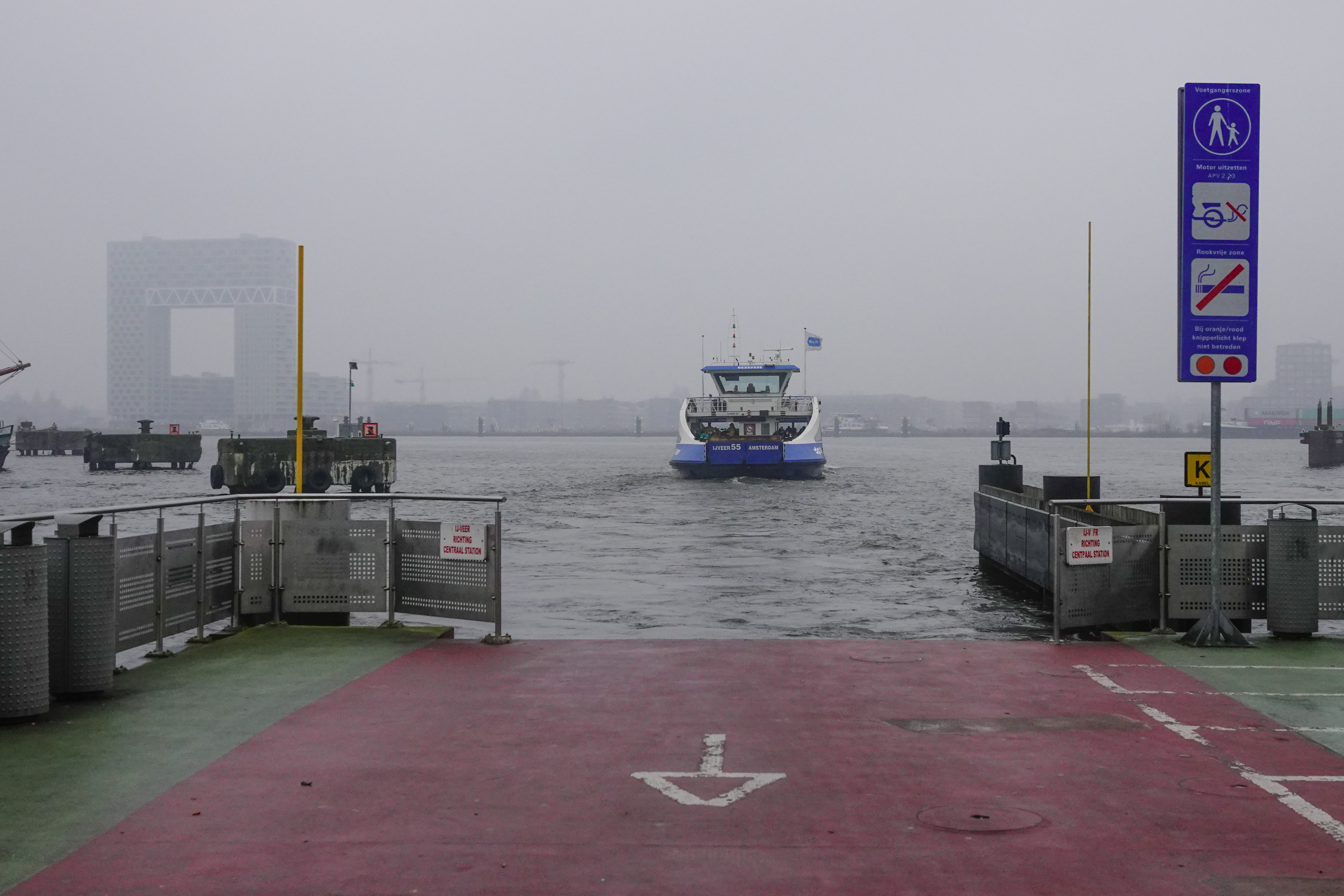 kwamen we uit bij de aanlegsteiger van de pont. Een andere dan waar we mee naar Noord overstaken.