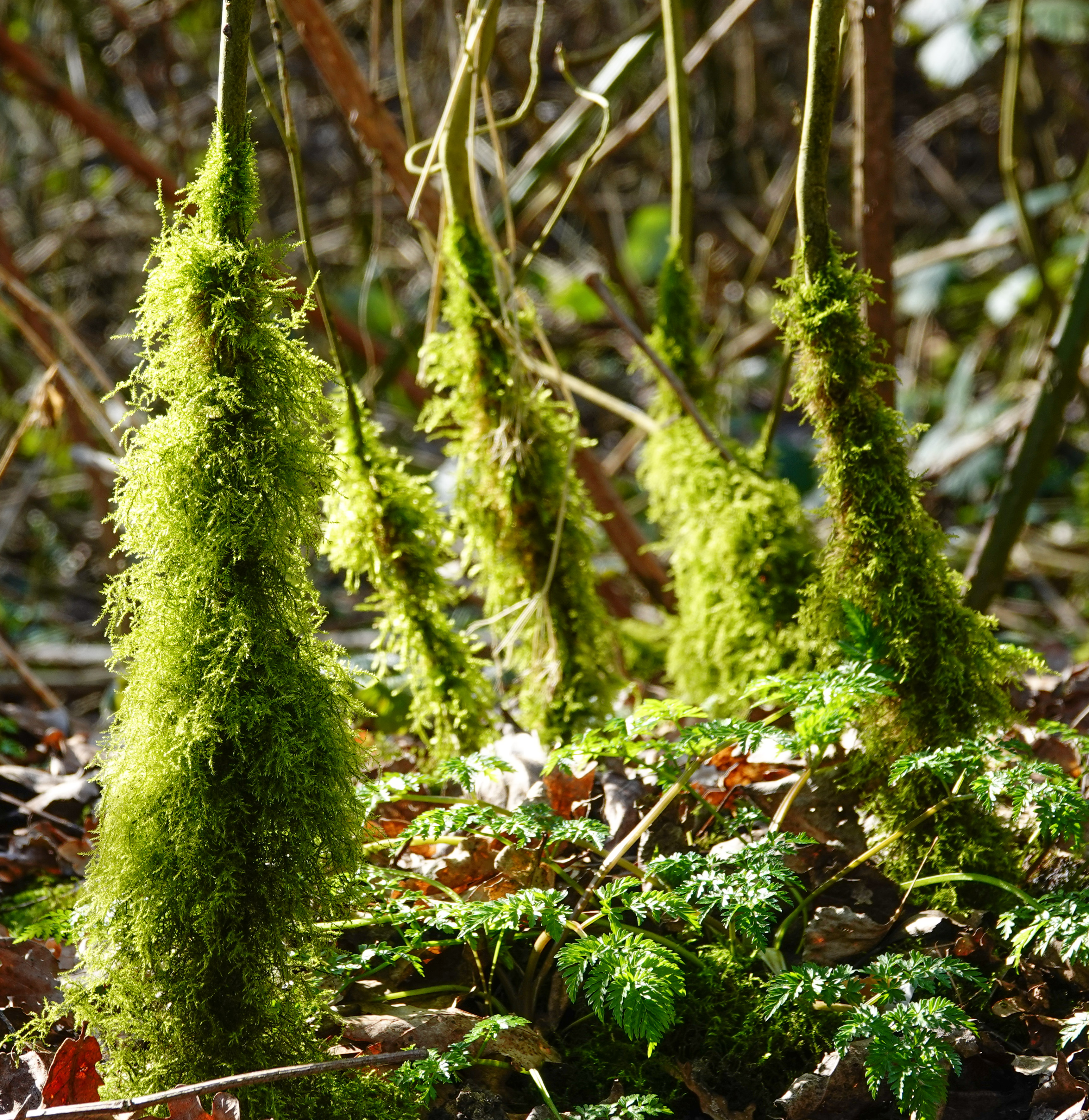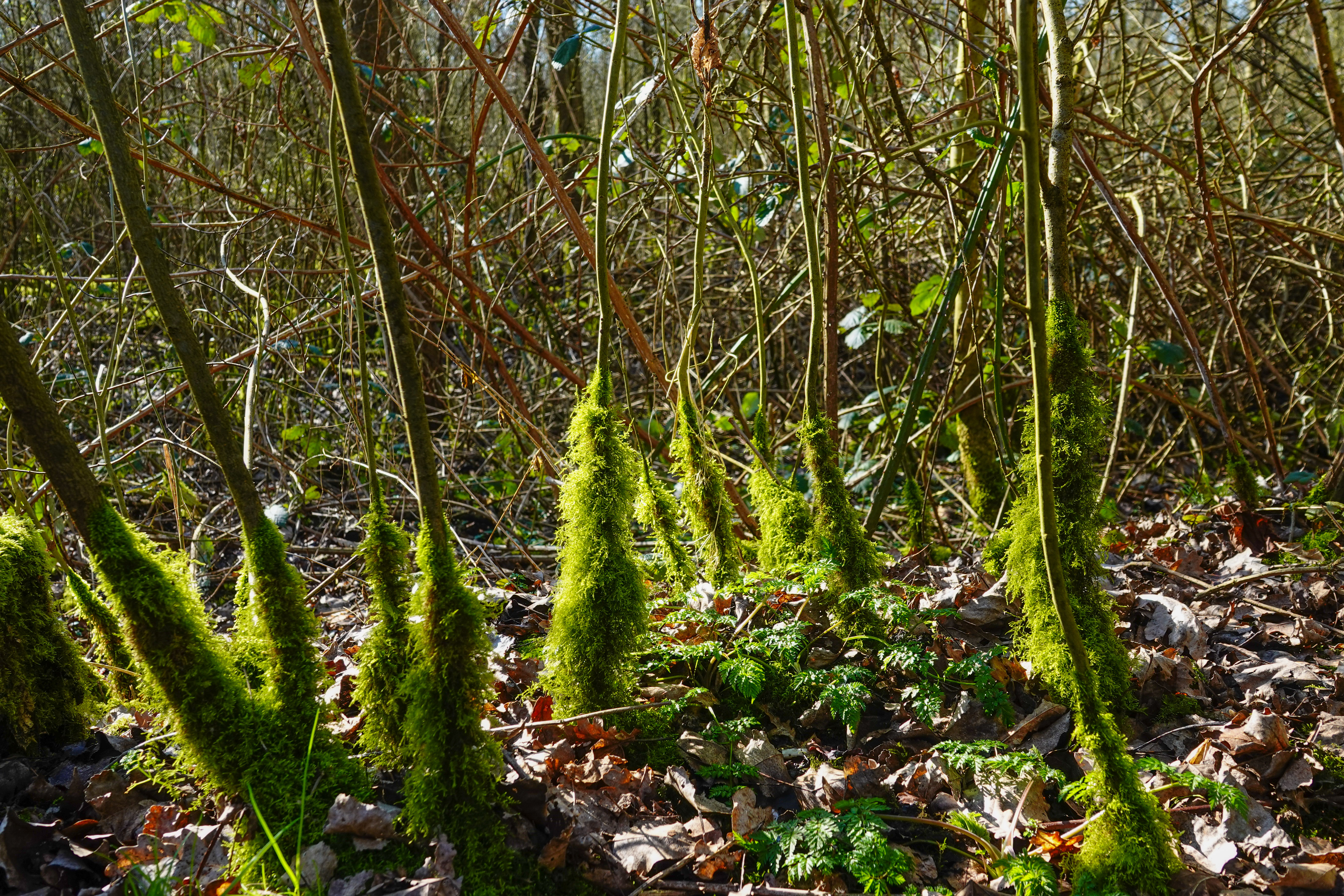 Het frisse mooie groen straalde in de zon, hoewel deze mossoort misschien niet zo’n positief teken is voor de groei in het bos. Het was wel een apart gezicht.