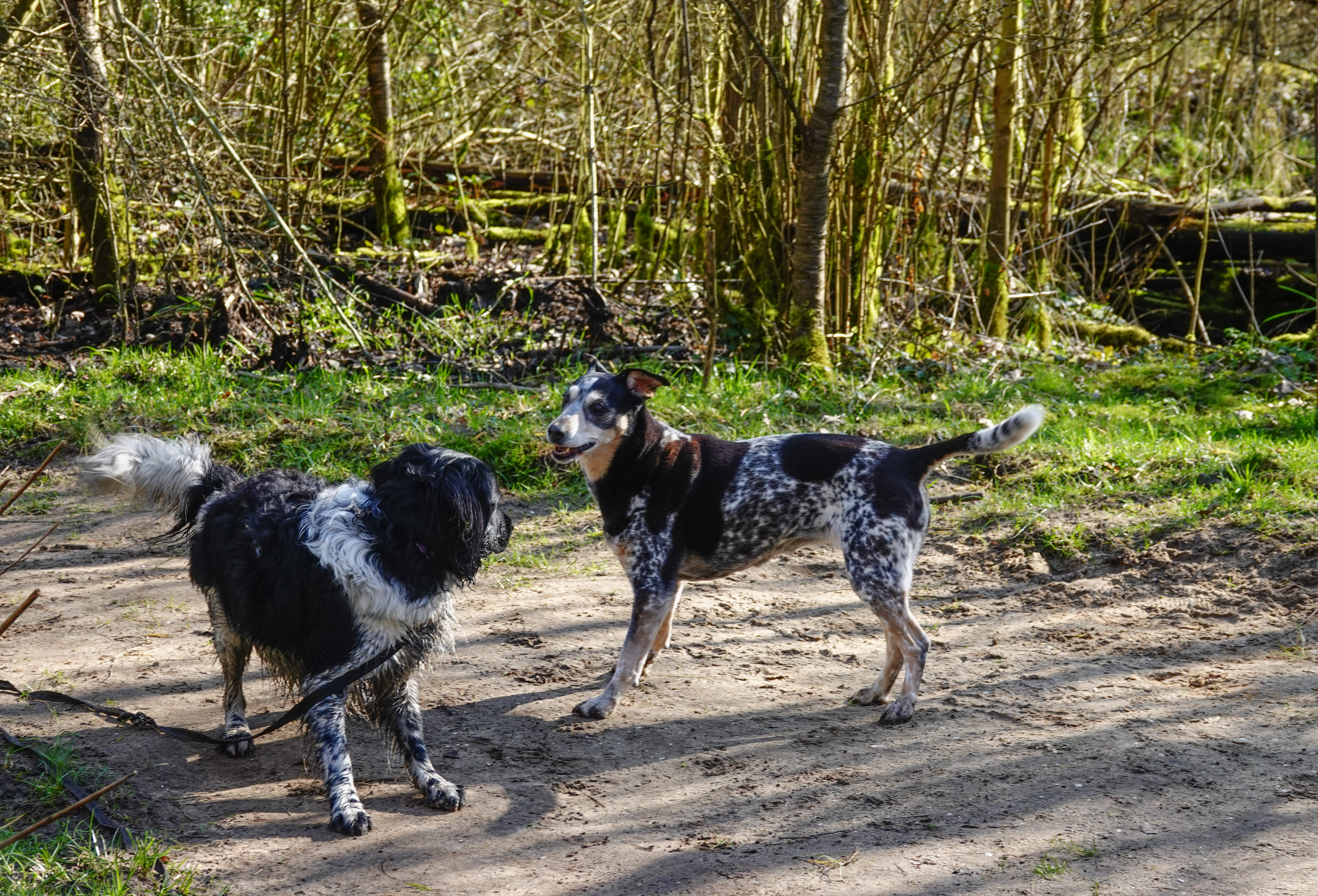 De bijbehorende baasjes probeerden in het Purmerbos allemaal even een graantje mee te pikken van het mooie weer.