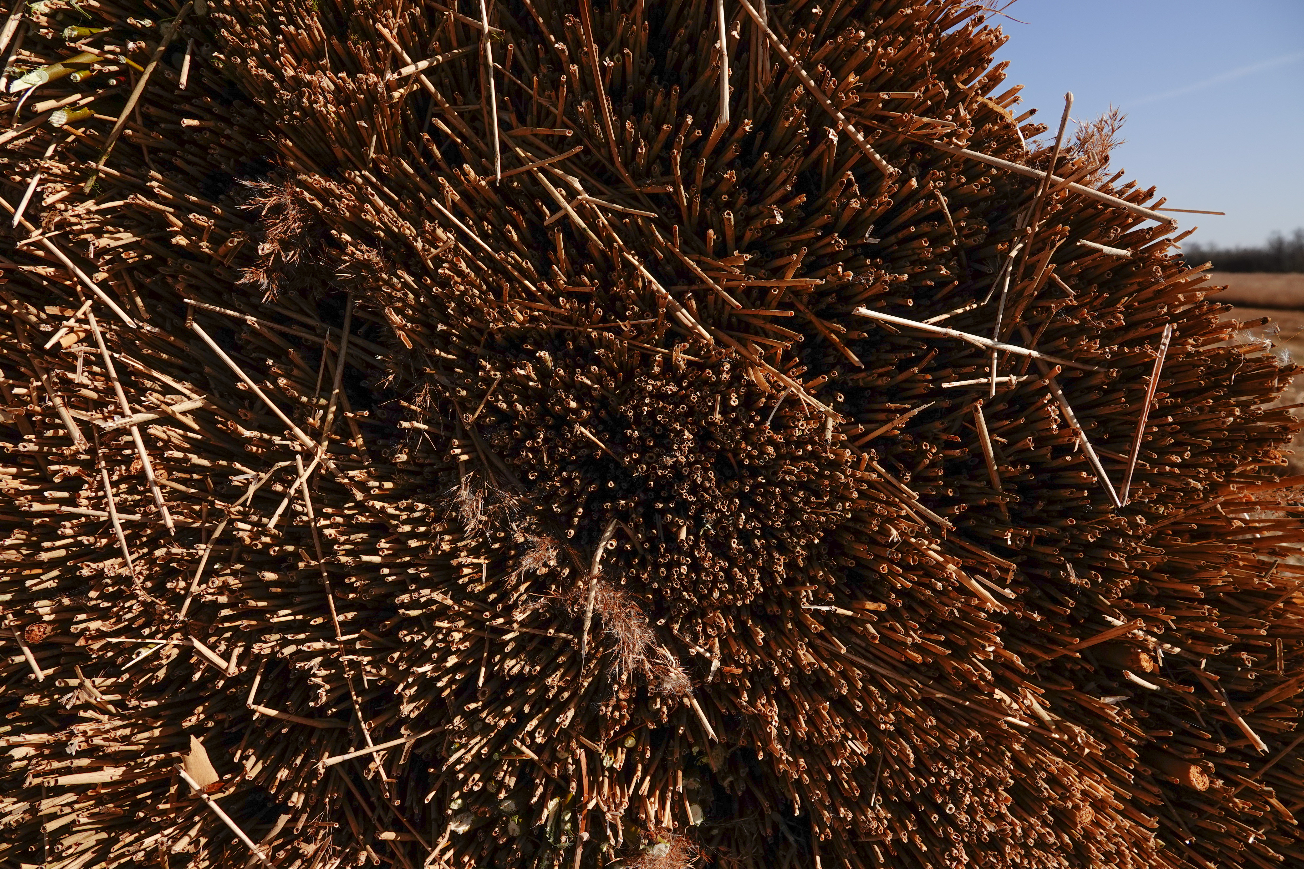Er werd nog druk riet gesneden. Grote hopen lagen langs de weg.