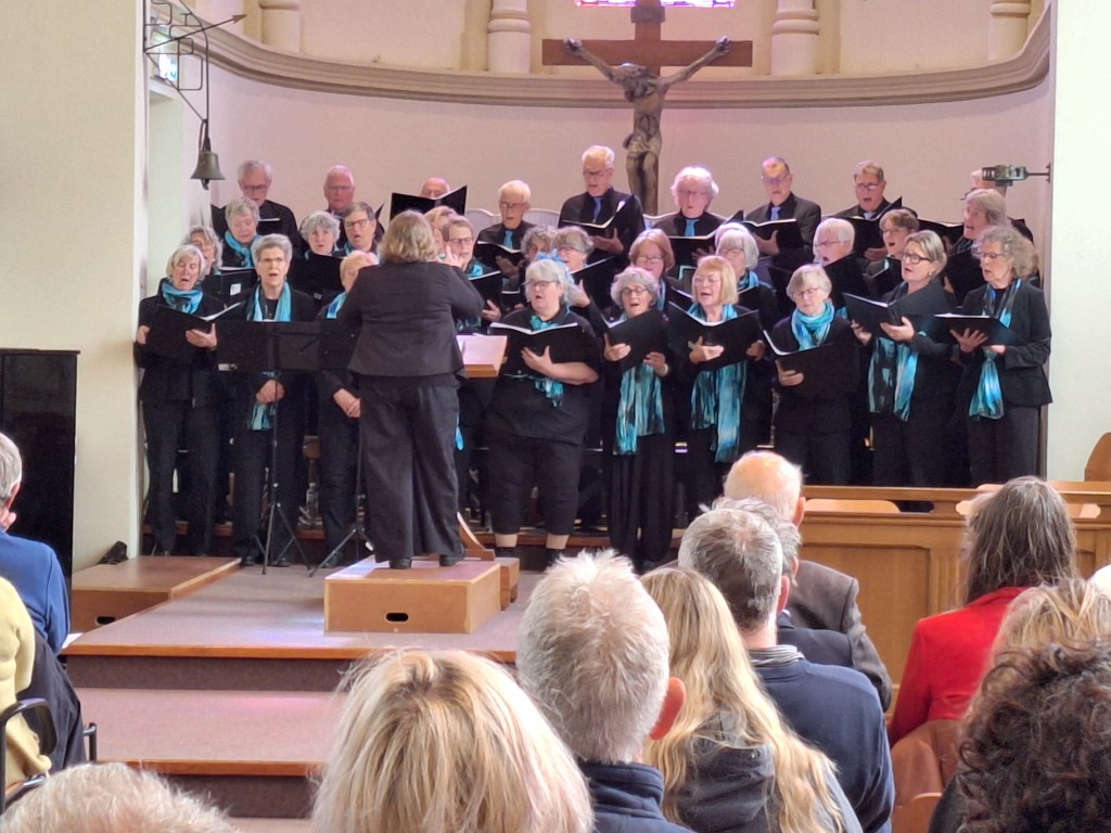 Op zondagmiddag was het eindelijk zover. Met ons gemengde koor hadden we maandenlang gestudeerd op liederen, die we nu ten gehore gingen brengen op ons jaarlijkse concert, dit keer in de RK kerk in ons dorp.