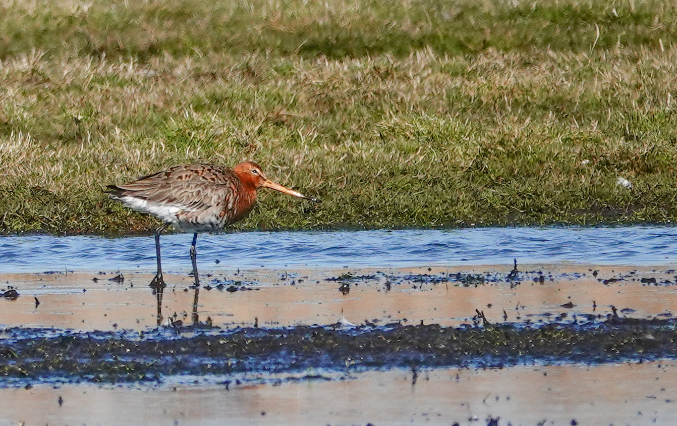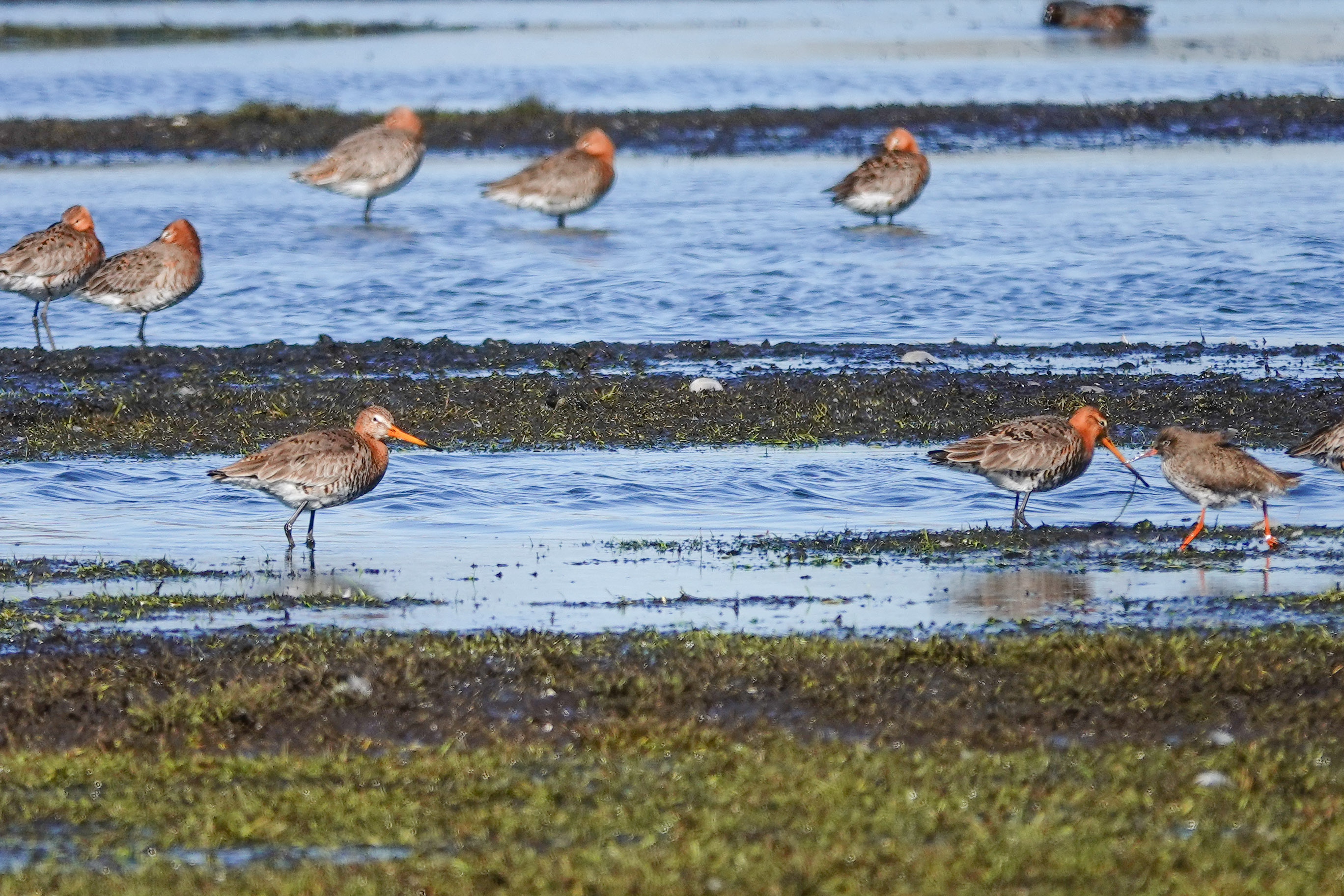 En weer zag ik bij het plas-dras gebiedje een groepje grutto’s. Ik blijf het fascinerende vogels vinden. Dus weer stapte ik af om ze vast te leggen.