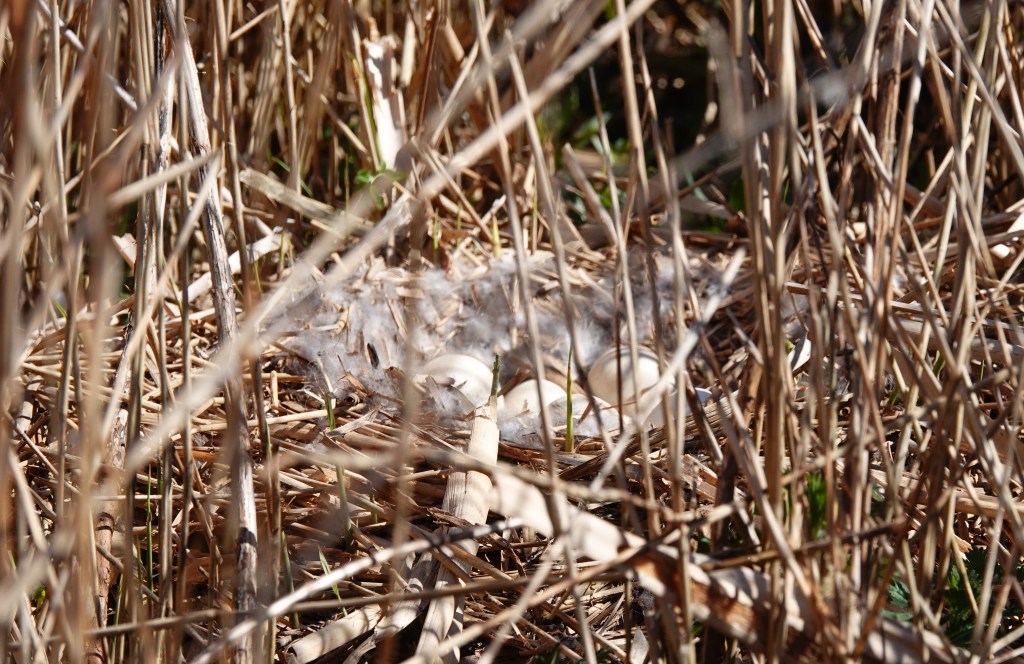 Het was duidelijk, dat de ganzen al verder waren dan de rest. Het leek wel een kraamkamer, waar we op een gegeven moment doorheen voeren. Overal zagen we in het riet al eieren op de nesten.