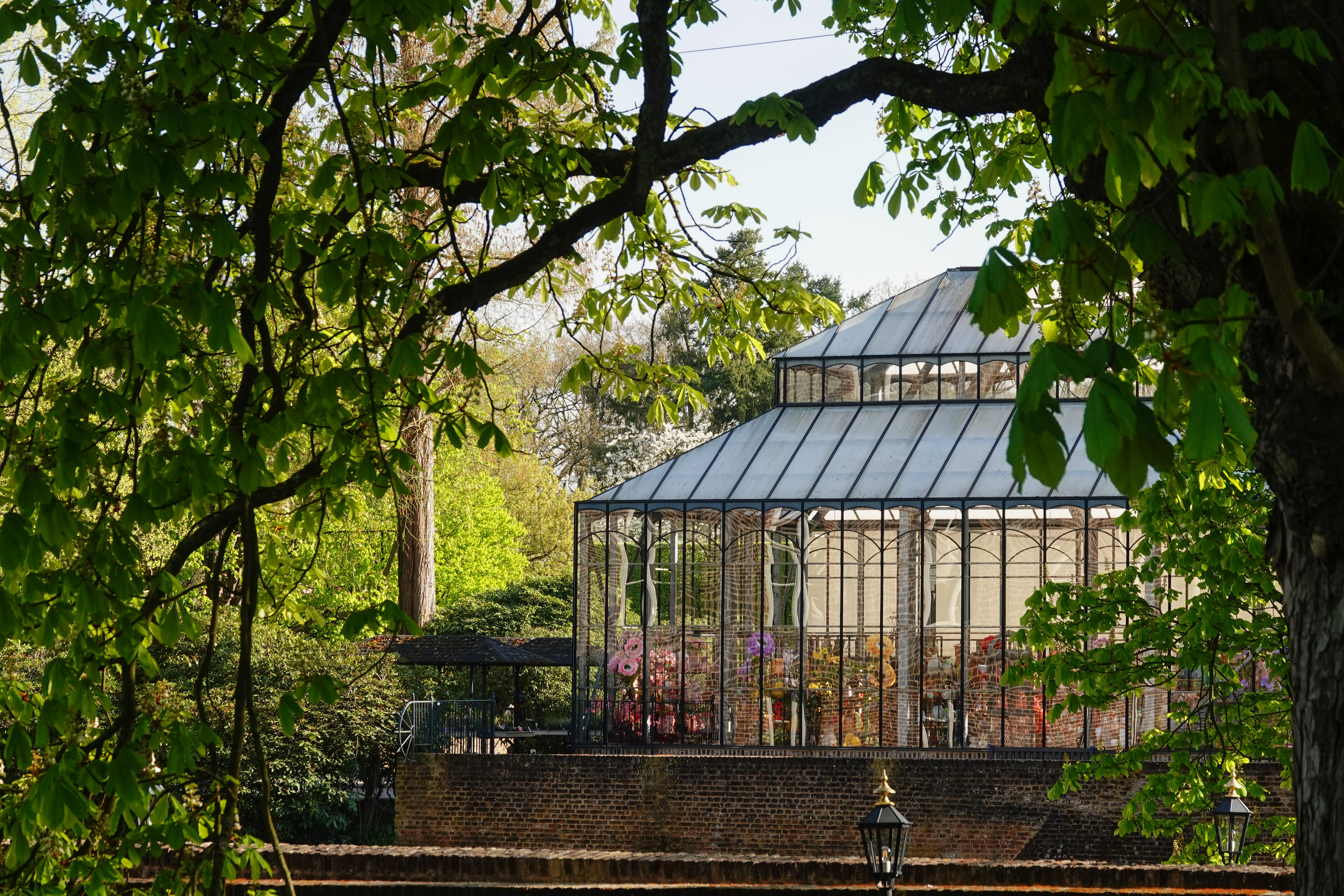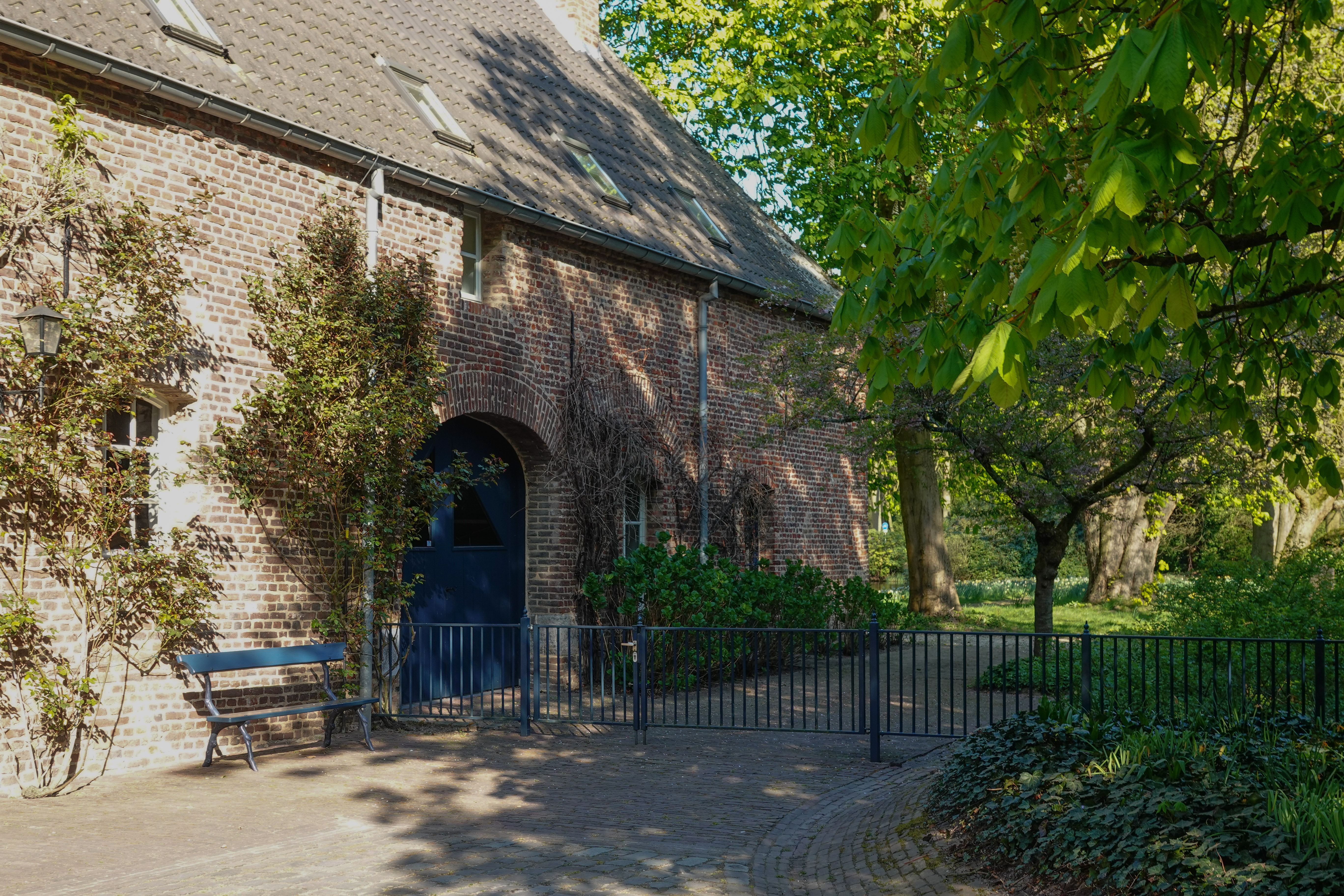 Op de binnenplaats bekeek ik de bijgebouwen en ving ik een glimp op van een kas, die onderdeel uitmaakt van de kasteeltuinen, die te bezichtigen zijn.