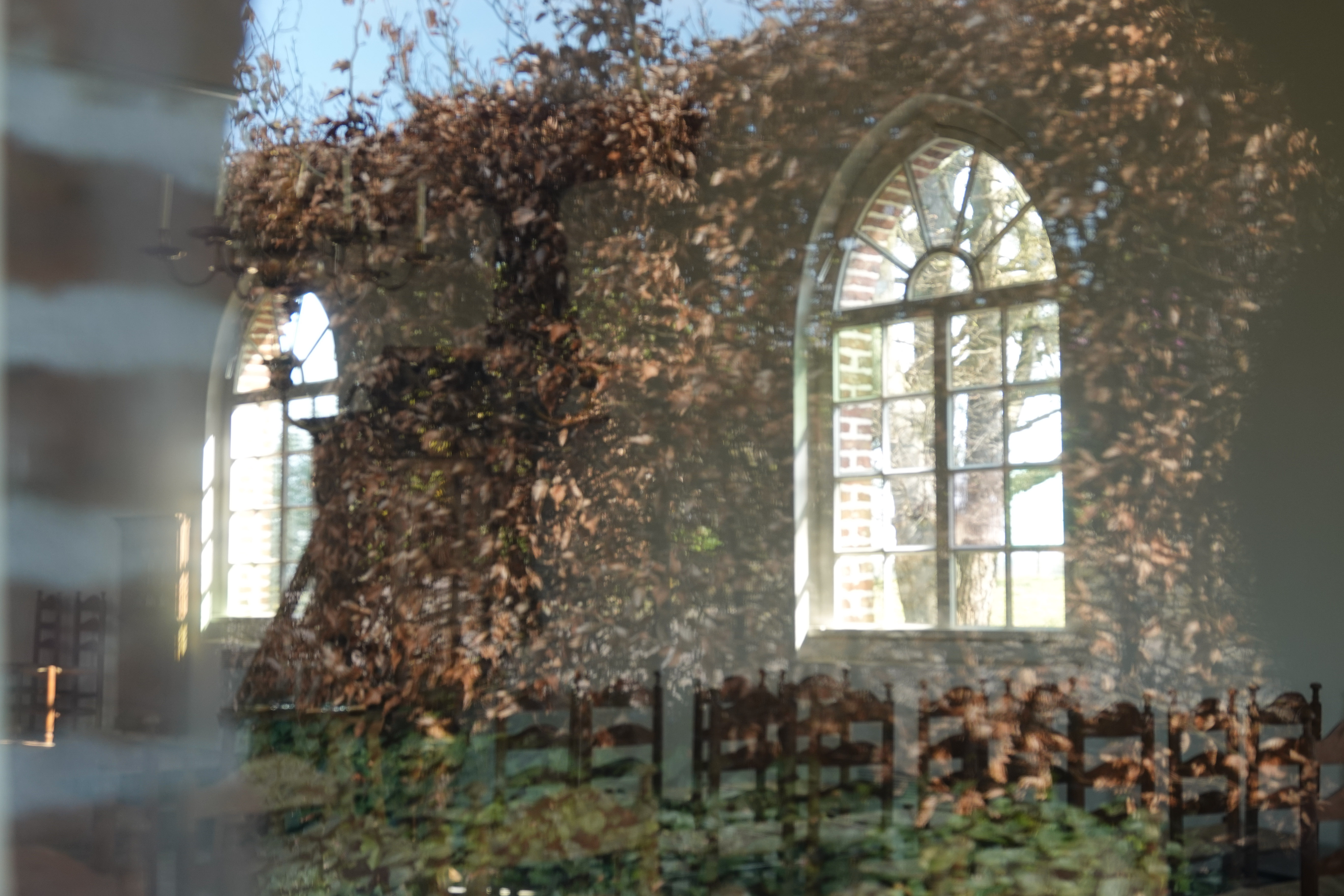Zoals de meeste kerken in Nederland was deze kerk dicht. Dus werd het gluren door de ramen en er ontstonden vervreemdende plaatjes.