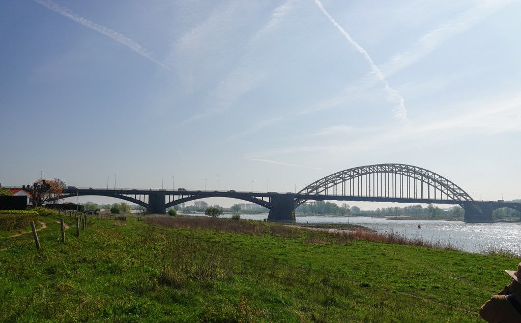 De zon was al snel door de mist heen en voordat we bij onze eerste stop aankwamen, die we op de terugweg naar huis zouden aandoen was het al volop zonnig. We gingen naar Lent. Dat ligt op een eilandje aan de Waal met zicht op Nijmegen.