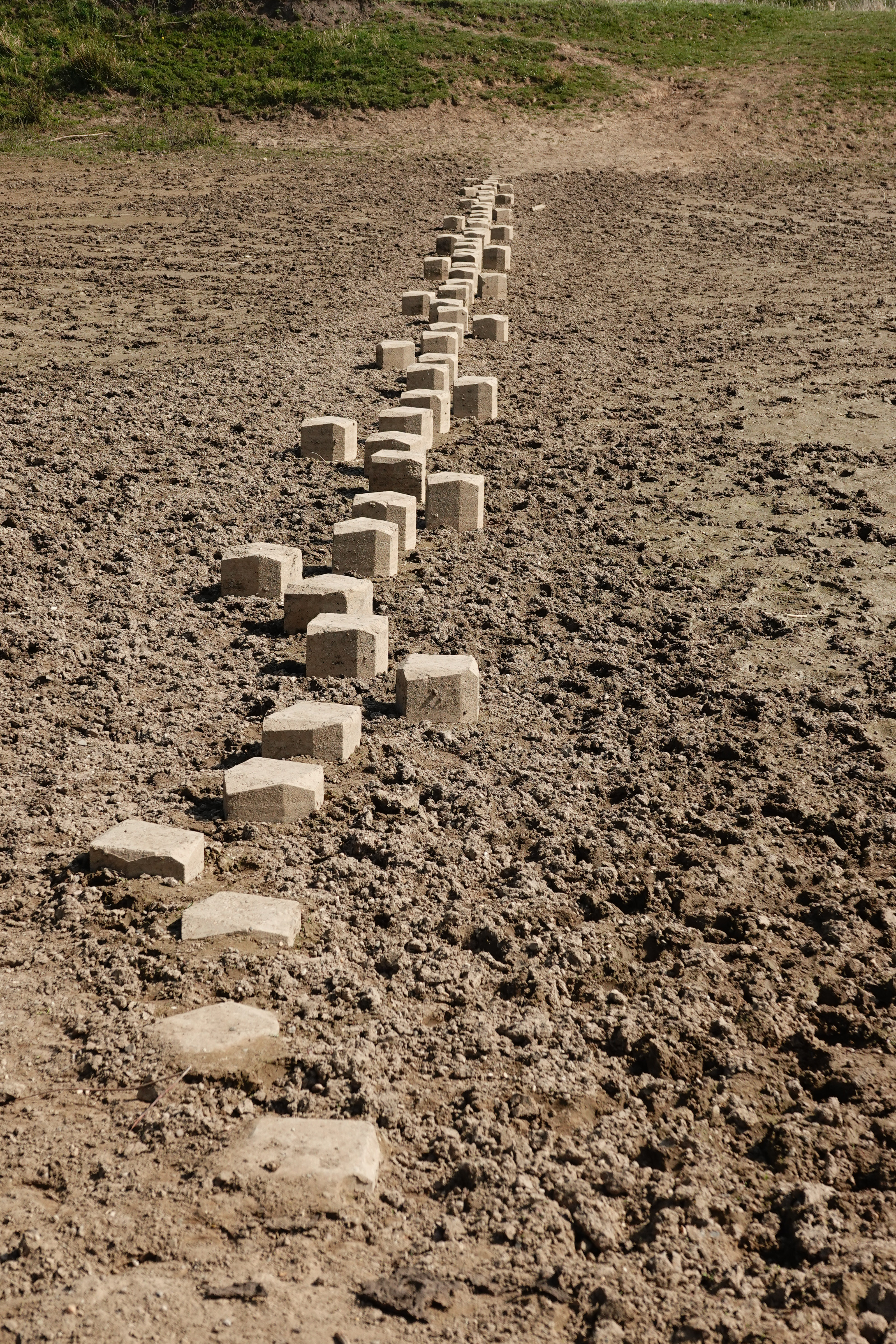 De droge rivierbedding had stapstenen om in nattere periodes droge voeten te houden.