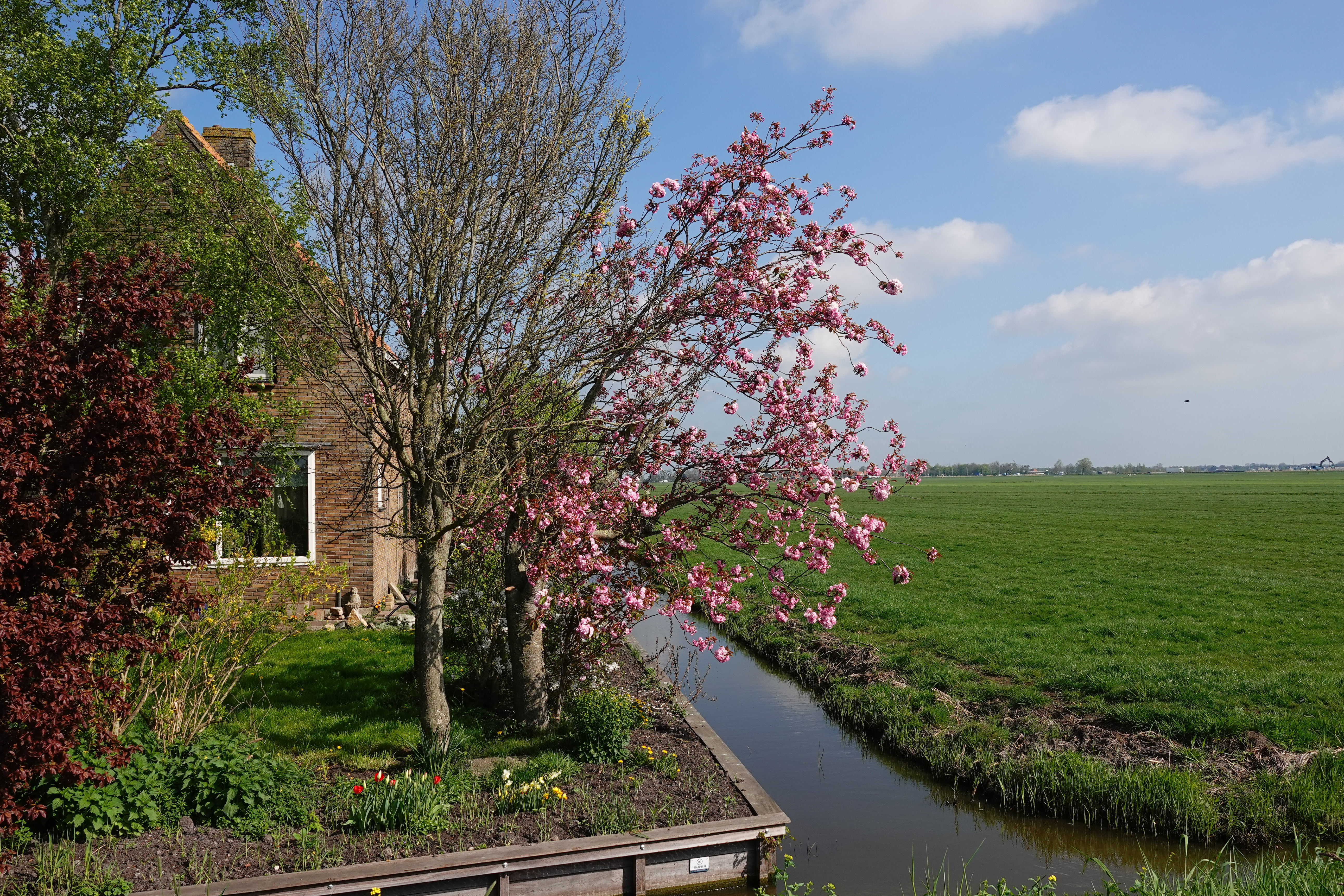 Er is daar één doorgaande straat, de Lagedijk/Zedde met aan het begin een woonwijkje. Bloesem in de boomgaard en de mooi aangelegde tuinen duiden op het voorjaar.