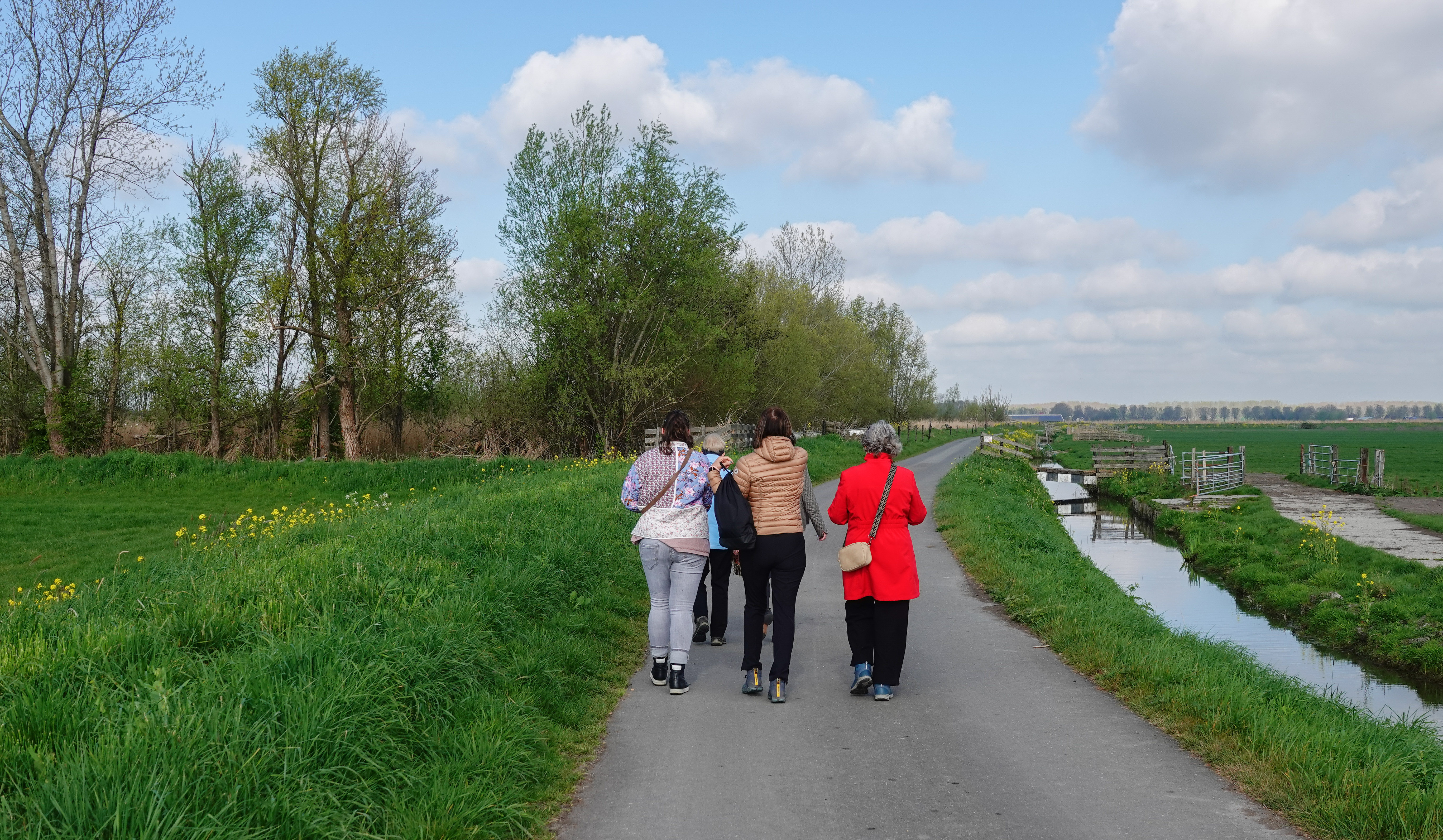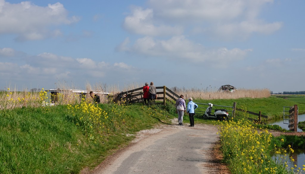Met een ploegje van zes liepen we vanuit het Huis aan het Water langs de weg van de Hoogedijk naar de brug, die ons naar de polder inleidt.