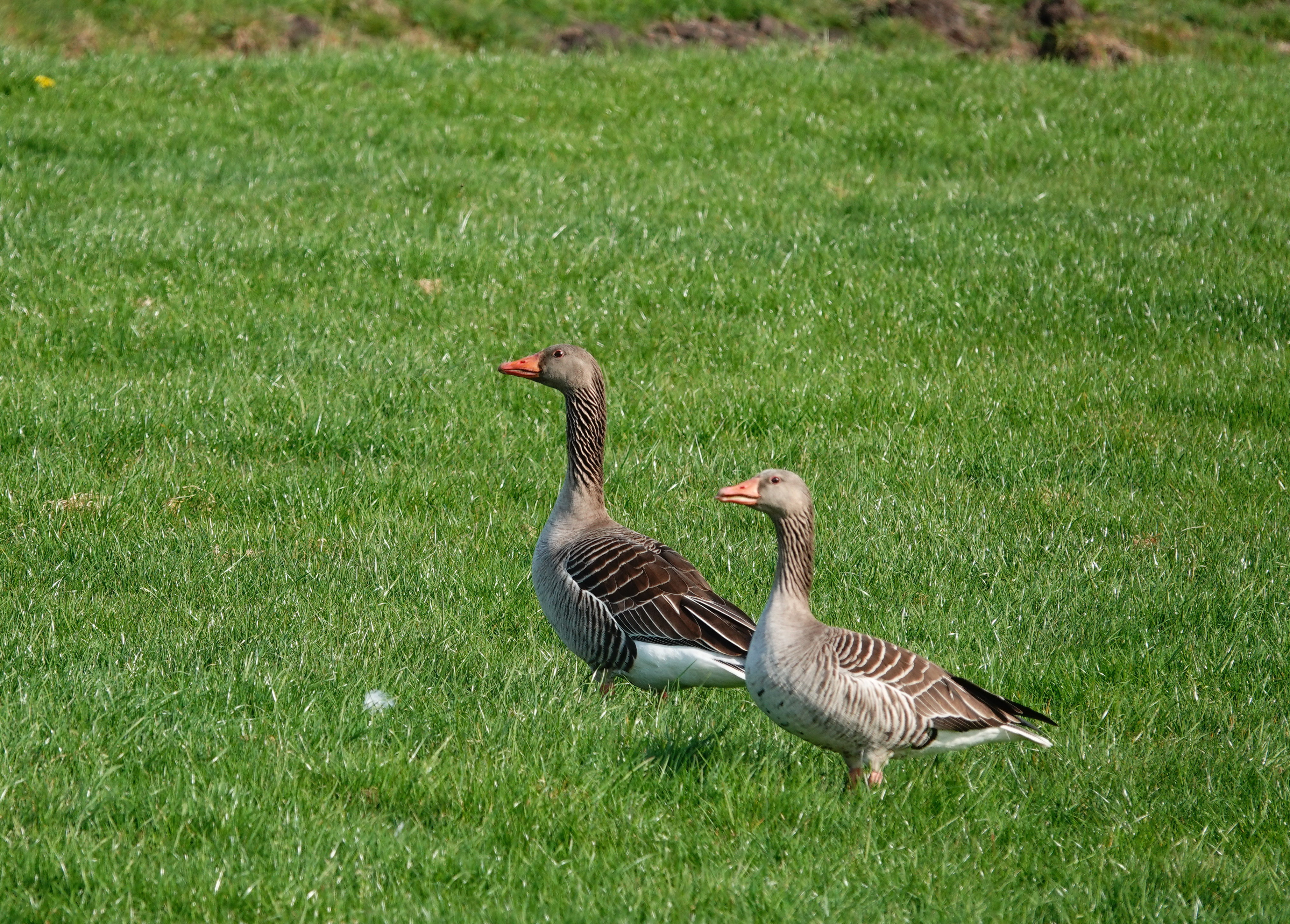 We zien weinig vogels. Wat ganzen en een dagpauwoog laten zich vastleggen op de foto.