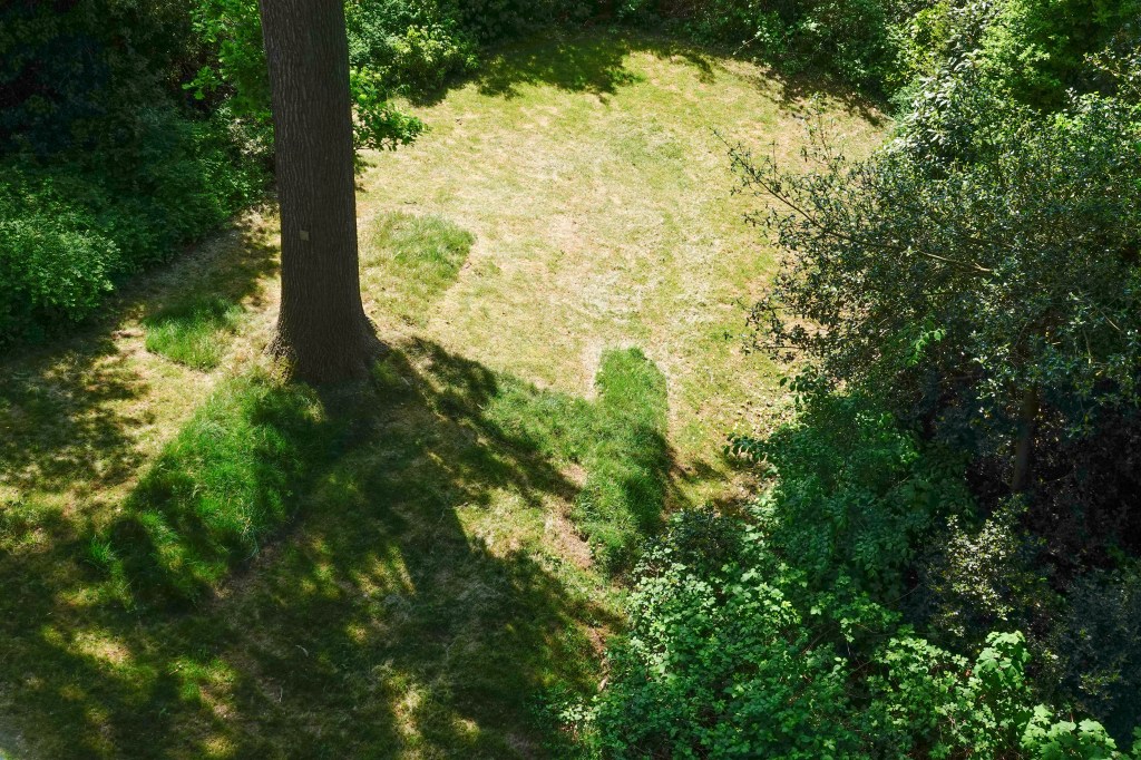 Daar hing een bordje om ons opmerkzaam te maken op de contouren van een vliegtuig in de tuin beneden.