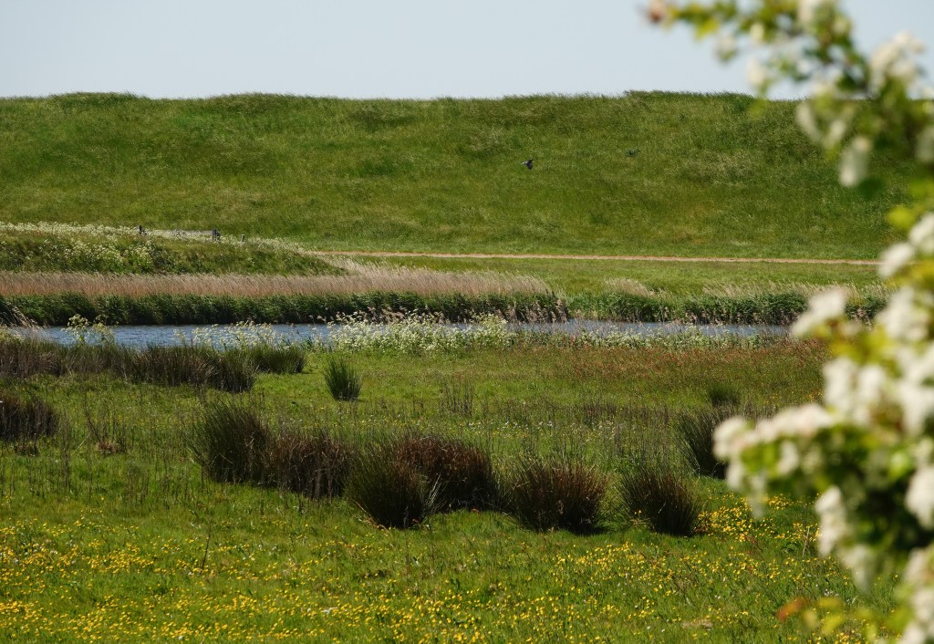 Een klein eindje verder stapten we uit de auto bij Vatrop. Daar ligt een natuurgebied dat is ontstaan door dat men de kleigrond weg haalde voor versteviging van de dijken. Er bleef uiteindelijk een grote kleiput over, dat natuurgebied werd. In 1983 werd het ingericht als hoogwatervluchtplaats voor wadvogels, zoals de tureluur.