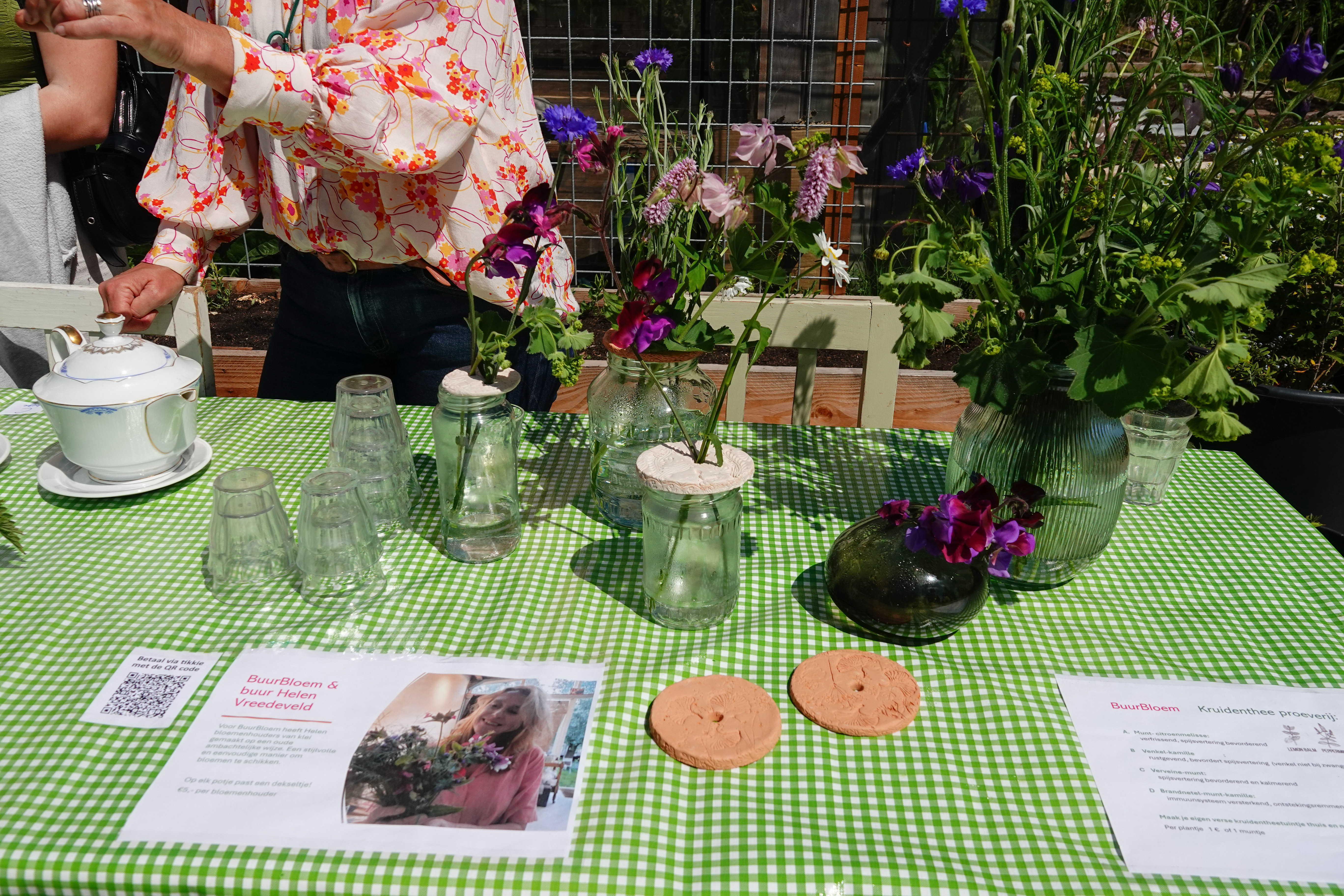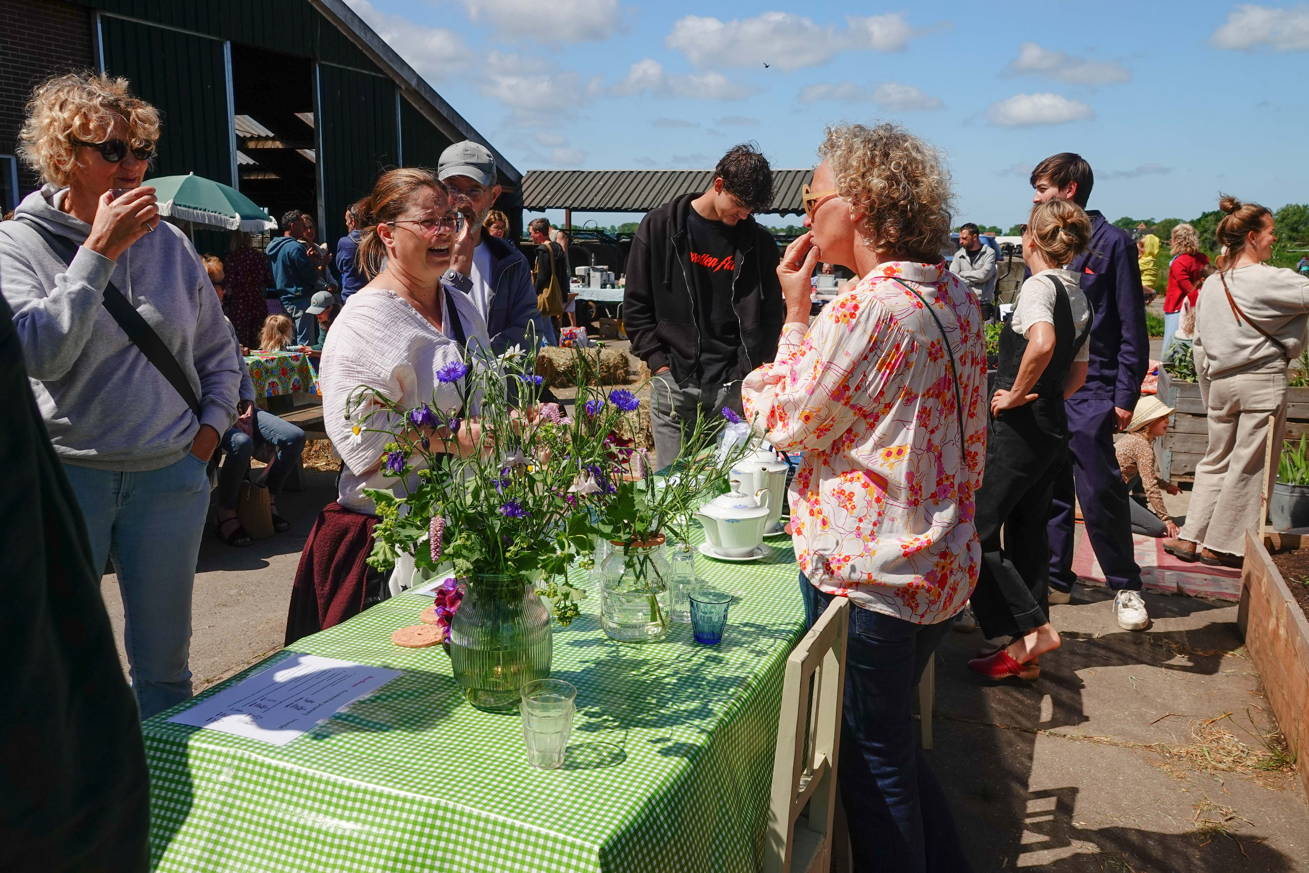 Een initiatief van een paar vrouwen werd gepromoot. Zij proberen een buurtuin op te zetten, waar je wekelijks onbespoten bloemen kunt ophalen. De kas op de boerderij hebben ze tot hun beschikking