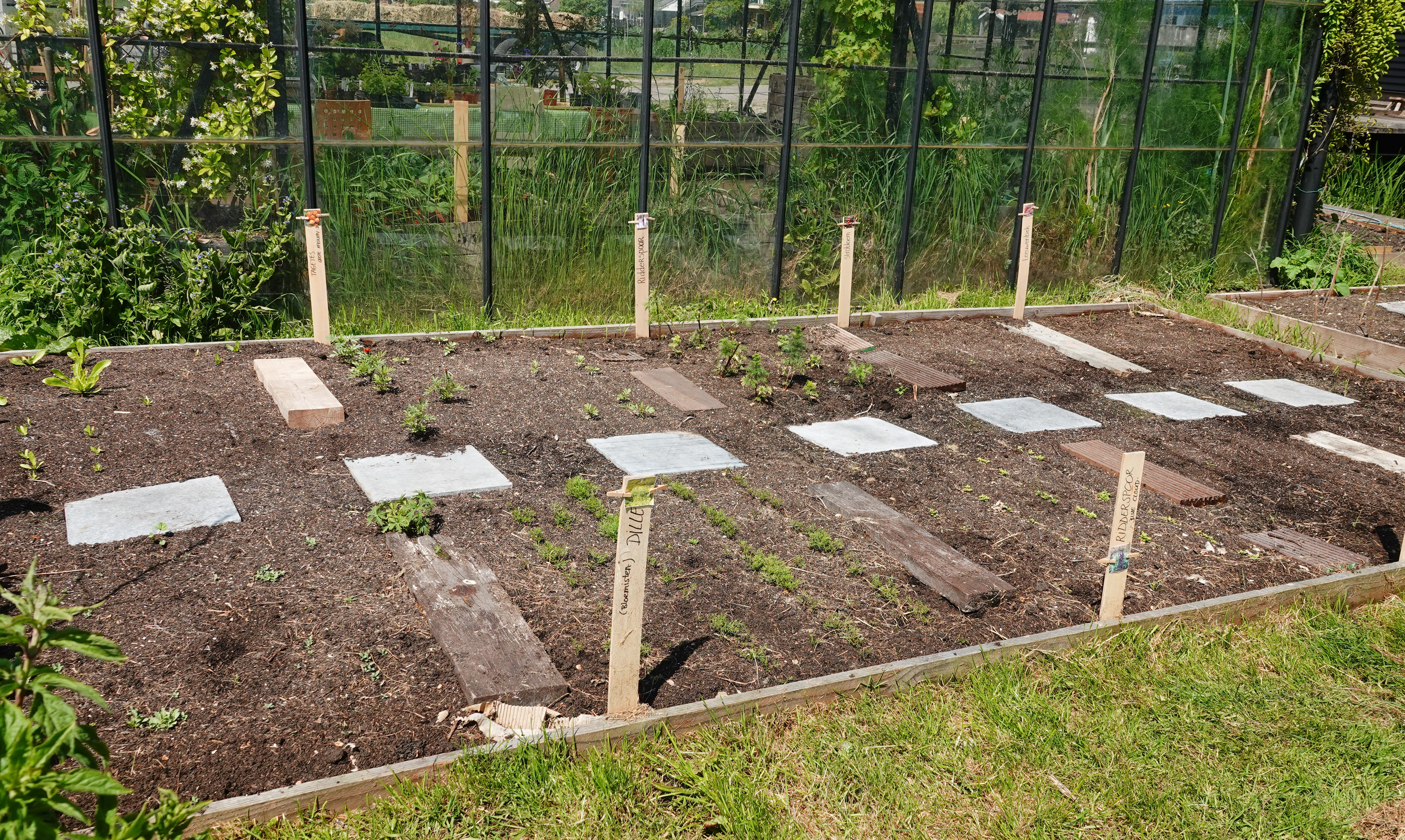 en op een stukje volle grond ernaast hebben ze al volop ingezaaid. Ik ben blij met het initiatief. Ik hou van bloemen in de vaas, maar voel me al meer bezwaard om ze te kopen, wetende wat die bloementeelt doet met de natuur.