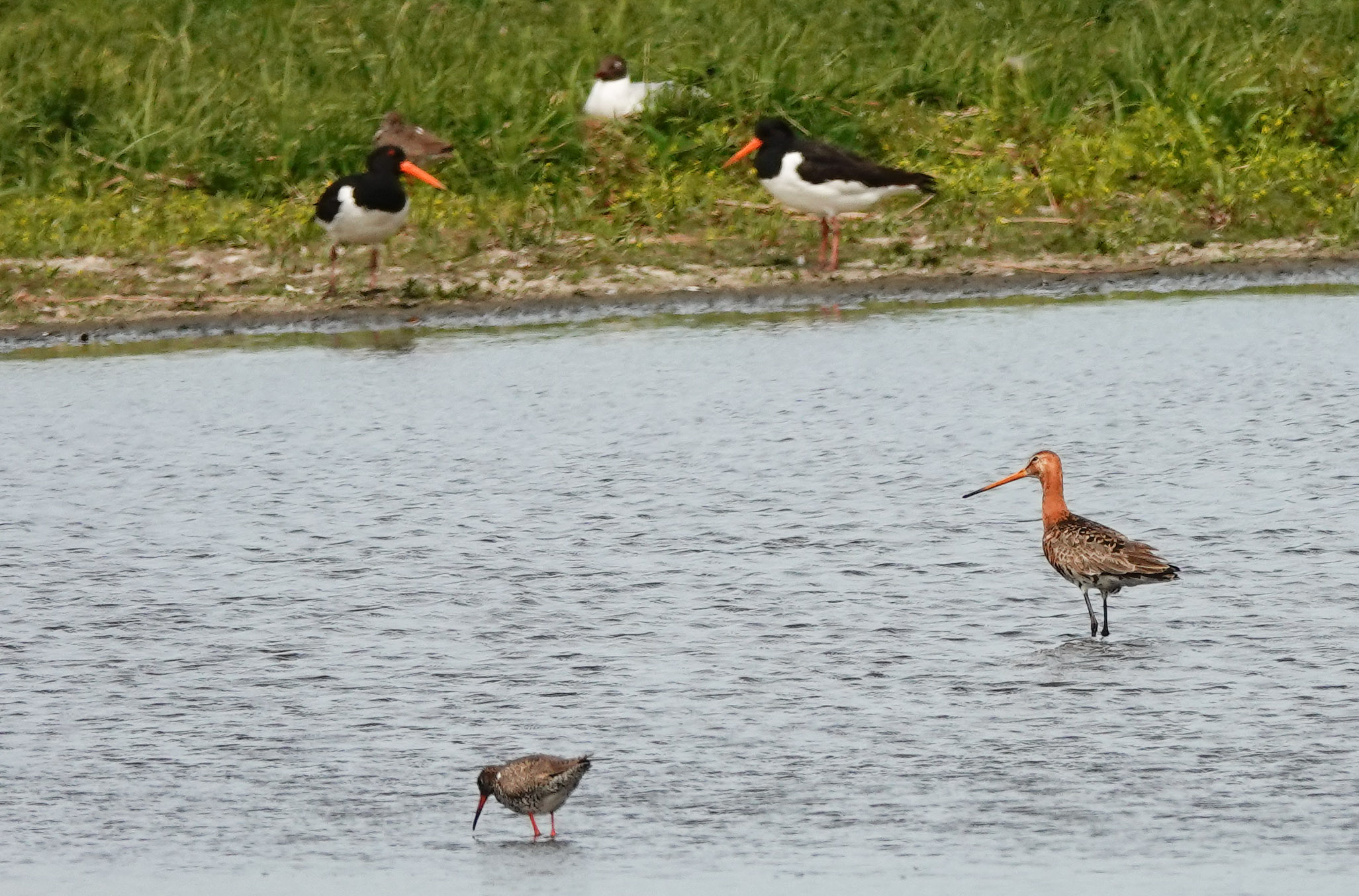 In een klein plas dras gebiedje spotte ik zomaar een pulletje van de kievit, kluten, grutto’s, tureluurs, scholeksters en de lepelaar.