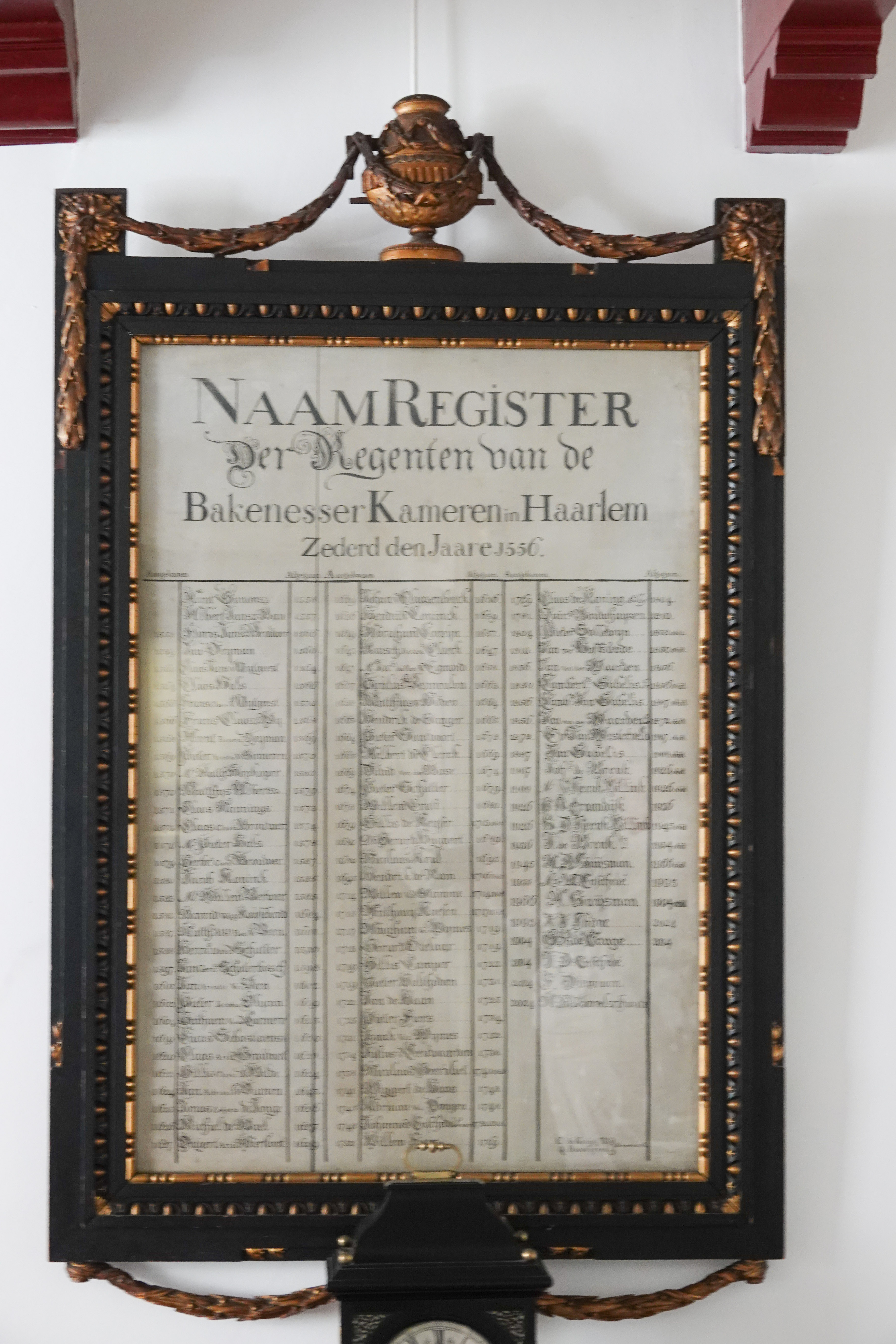 Het Hofje De Bakenesserkamer is gesticht door Dirk van Bakenes. Deze rijke Haarlemse stadbestuurder bepaalde in zijn testament dat er een hofje gebouwd moest worden dat zijn naam zou dragen. Het hofje was bedoeld voor alleenstaande, oude vrouwen die niet zelfstandig konden wonen. Het had 20 ‘camers’, want zo werden de kleine woningen destijds genoemd. Vandaar dat dit hofje De Bakenesserkamer heet.