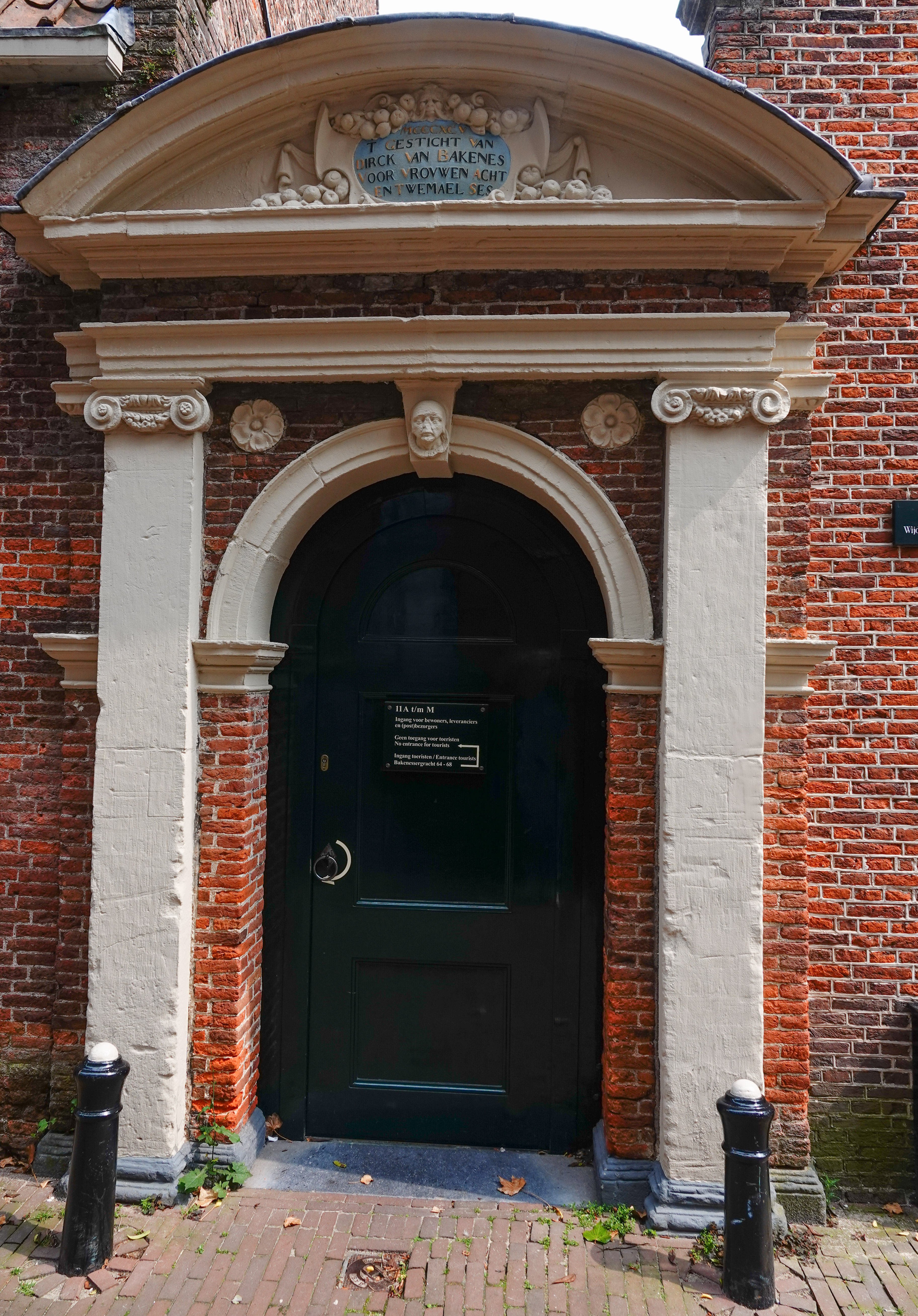 De Bakenesserkamer is het oudste hofje van Nederland, gesticht in 1395. Arnold had voor elkaar gekregen, dat de bewoonsters van het hofje op de enige dag van de week, dat ze gesloten zijn, voor ons de poort openden.
