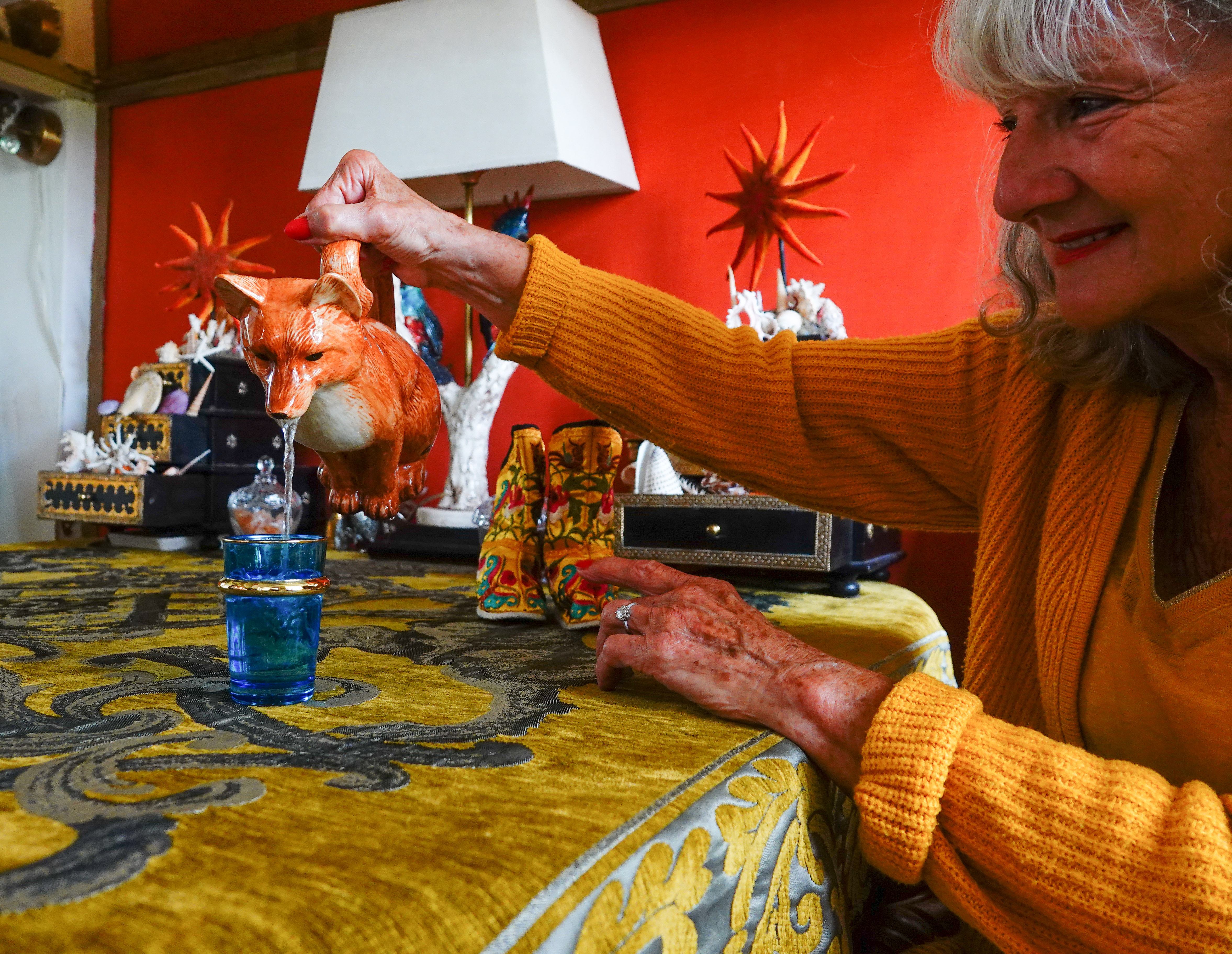 Zij vertelde graag over haar spullen, die ze in kringloopwinkels op de kop had getikt, zoals het bijzondere vosje, dat een schenkkannetje bleek te zijn.