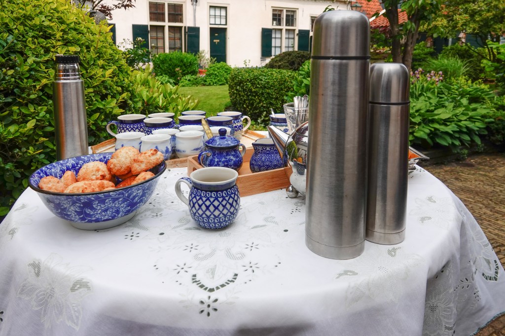 We kregen een warm onthaal in de tuin met koffie, thee en lekkere koek.