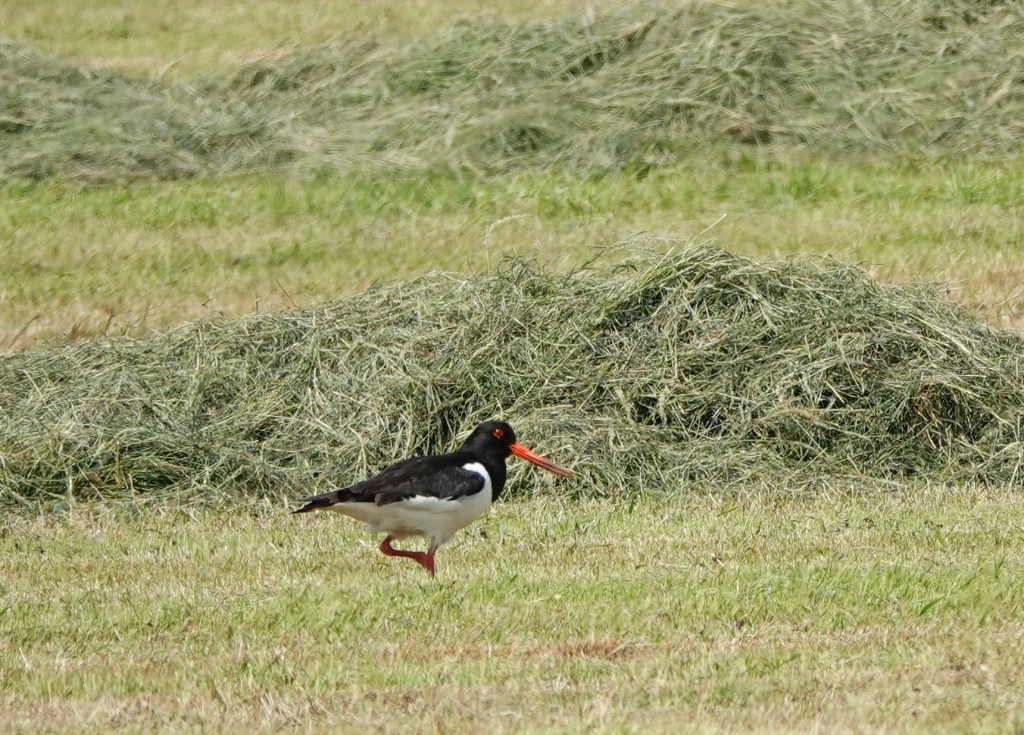 Een boer had net gemaaid, maar dat vond de scholekster geen probleem.