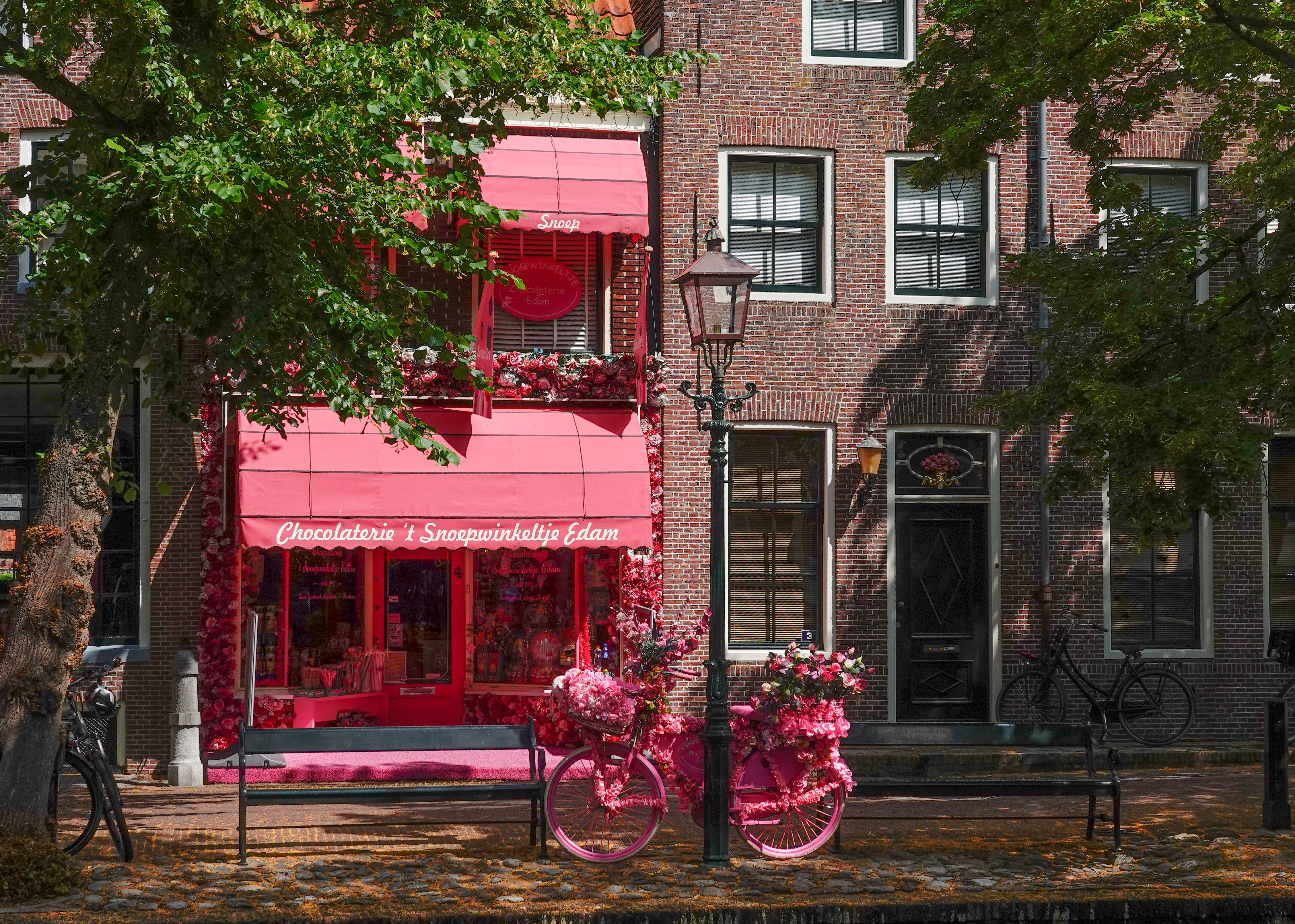 Sinds kort is er een snoepwinkel totaal rose aangekleed, allemaal voor de toerist. De gracht hoeft niet opgepimpt en ligt er al eeuwen mooi bij.