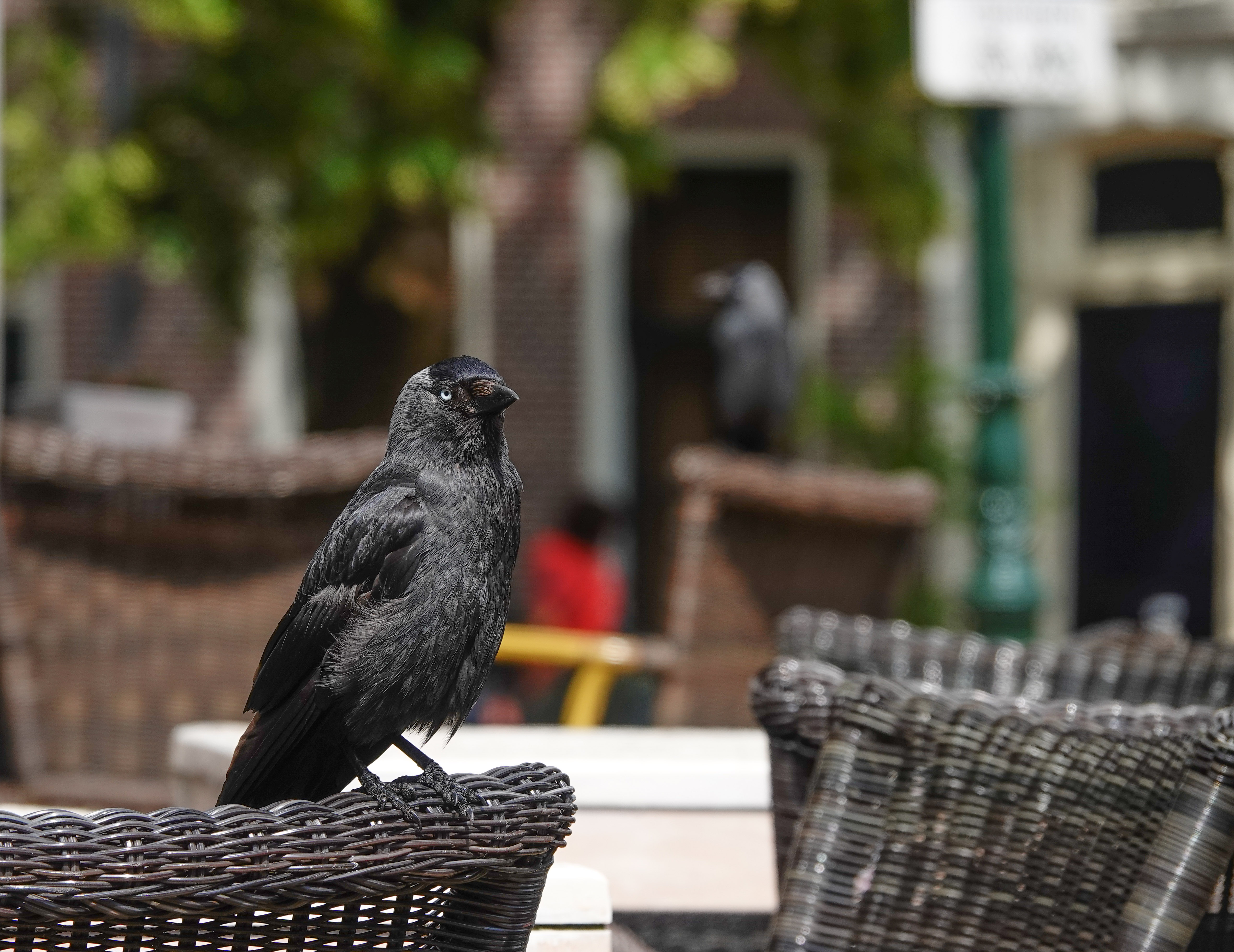 Het plein bij de Dam heeft een fijn terras. Hoewel de stoelen nog nat waren van die ene bui hebben we er als afsluiting van de wandeling, heerlijk even koffie gedronken onder toezicht van deze jongens.