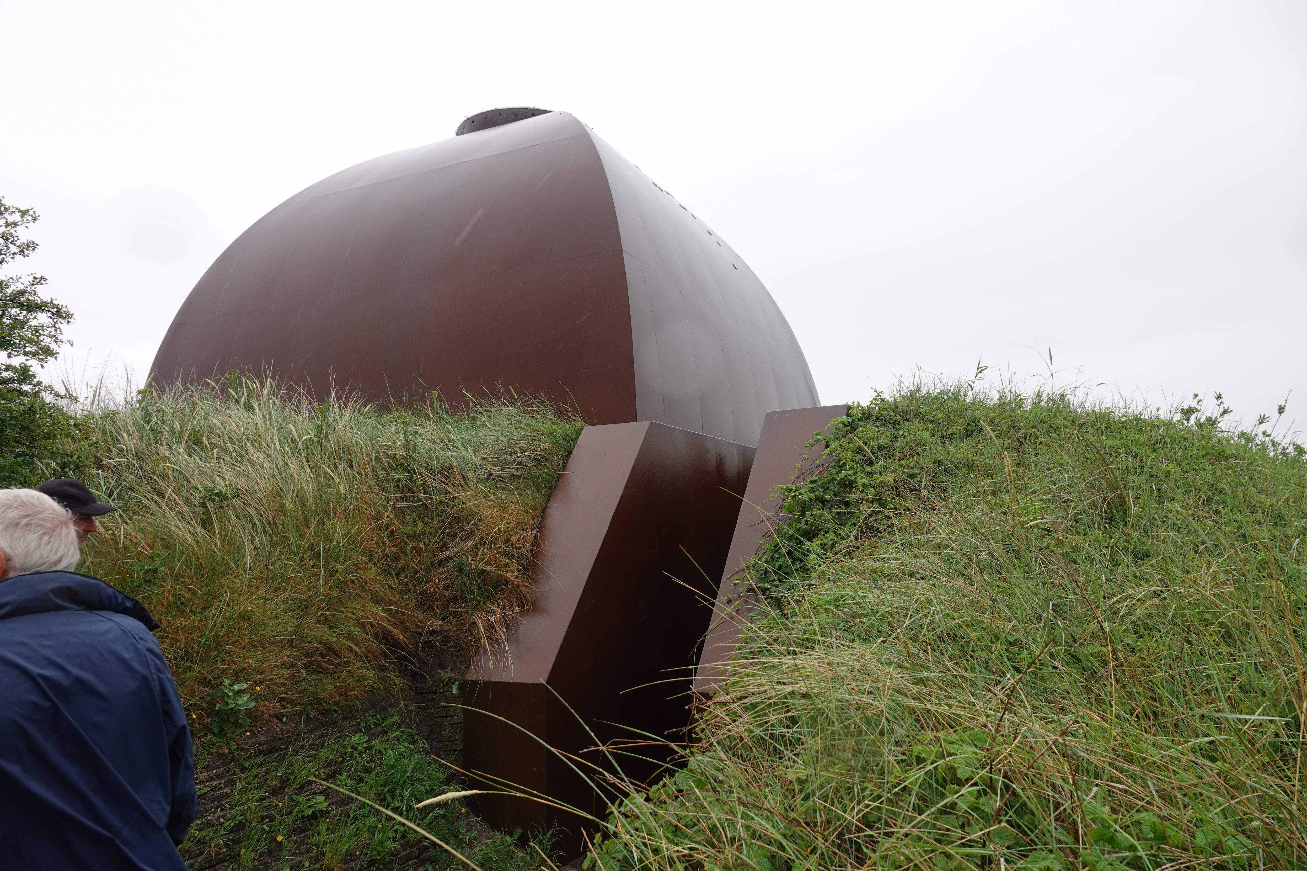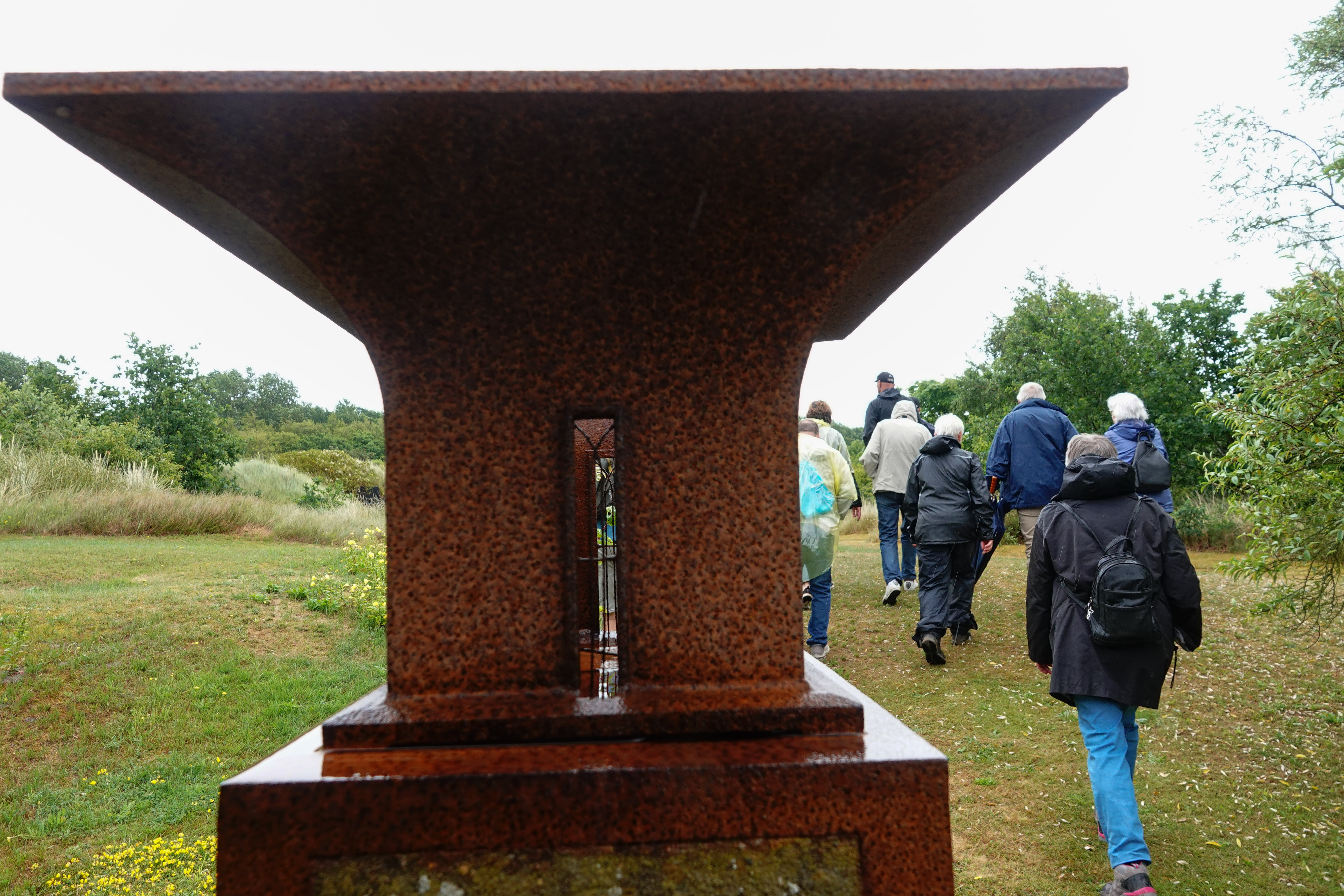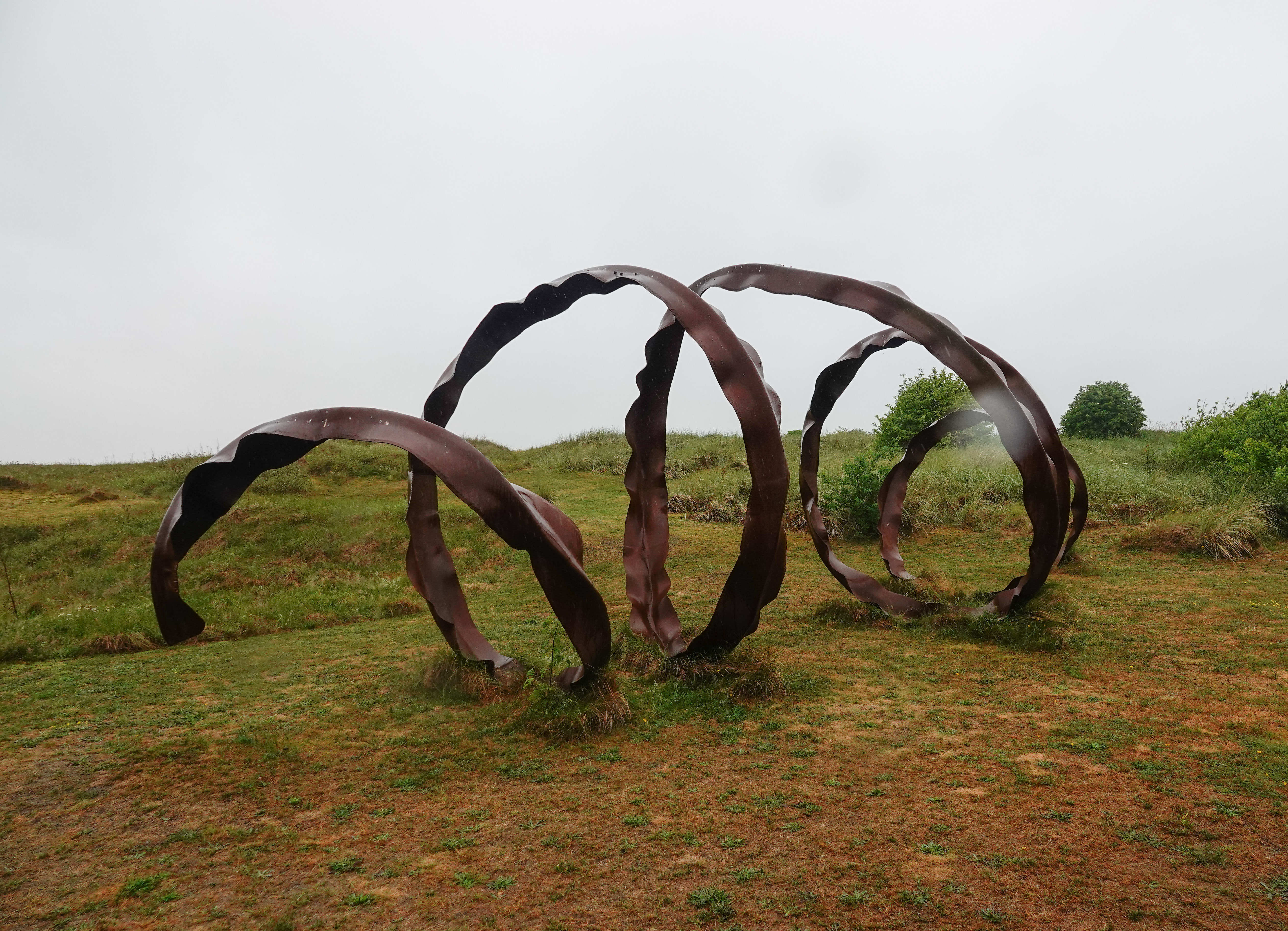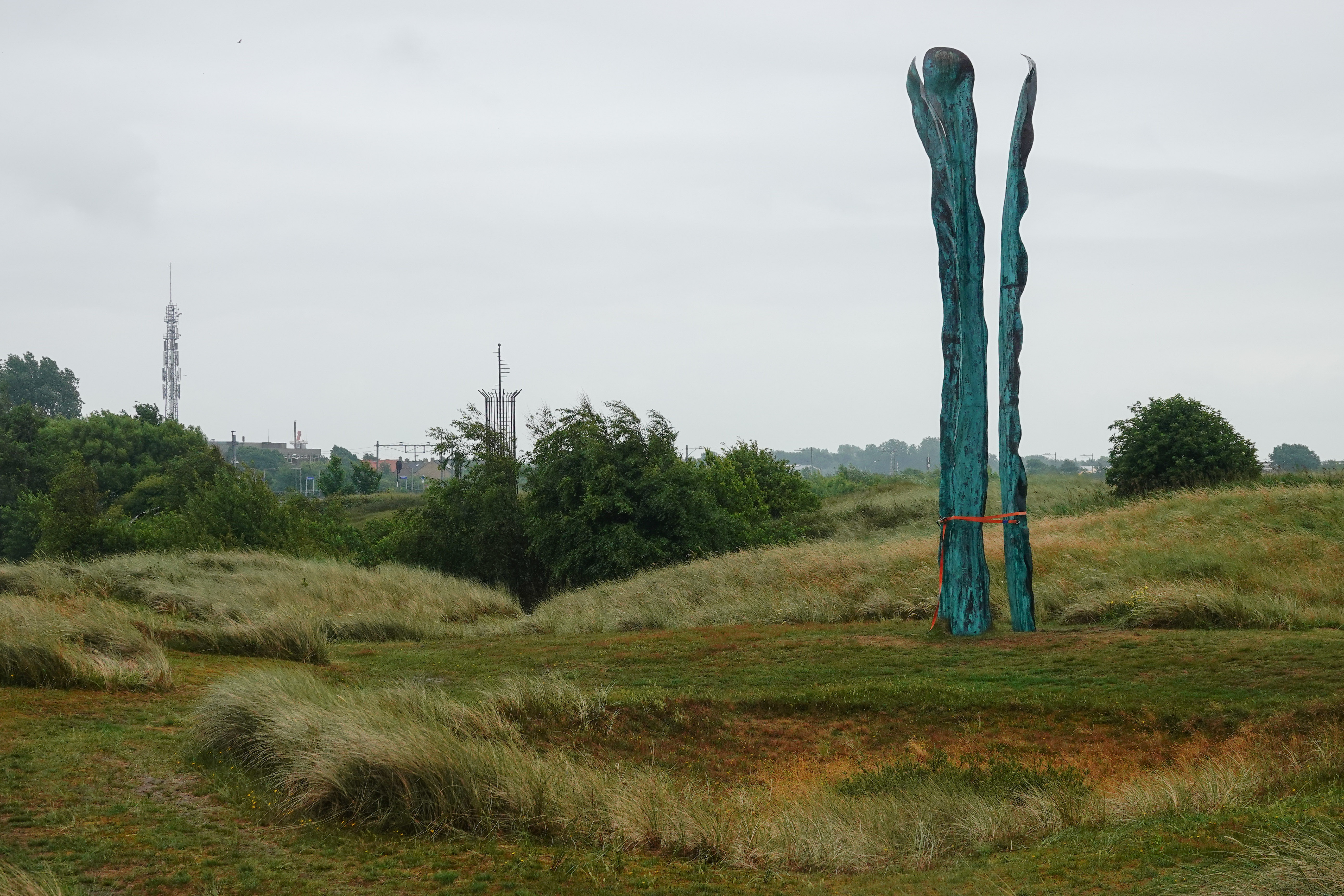 Blogvriendin Ferrara en ik wachtten tot de gids het startsein gaf om te vertrekken. Zonder gids is het niet toegestaan het duingebied vol kunst te bezoeken. Wij troffen een hele fijne gids, die zeker van meerwaarde was bij het bekijken van alle werk van R.W van de Wint. (1942 -2006)